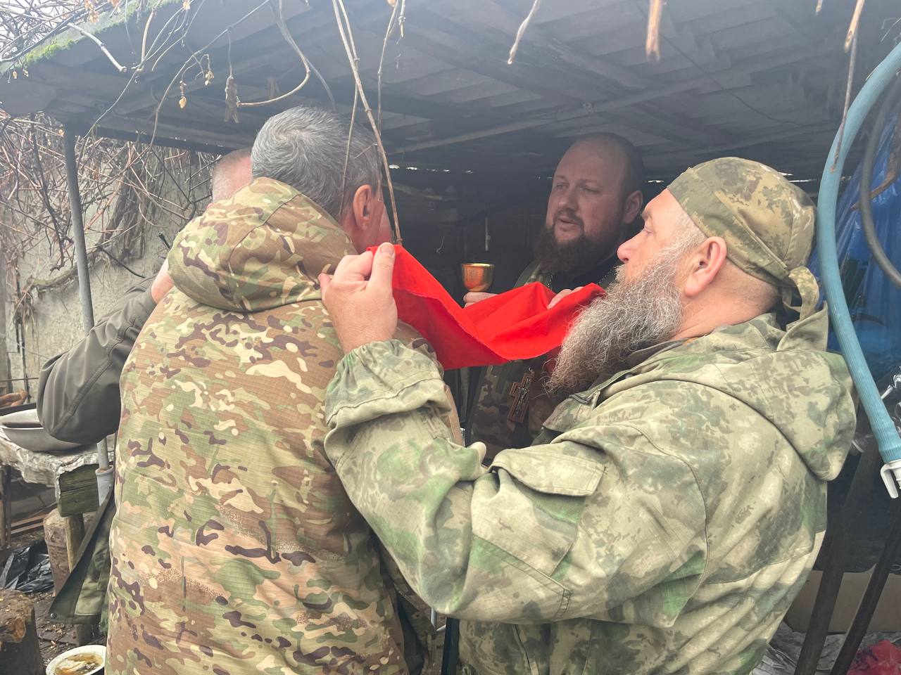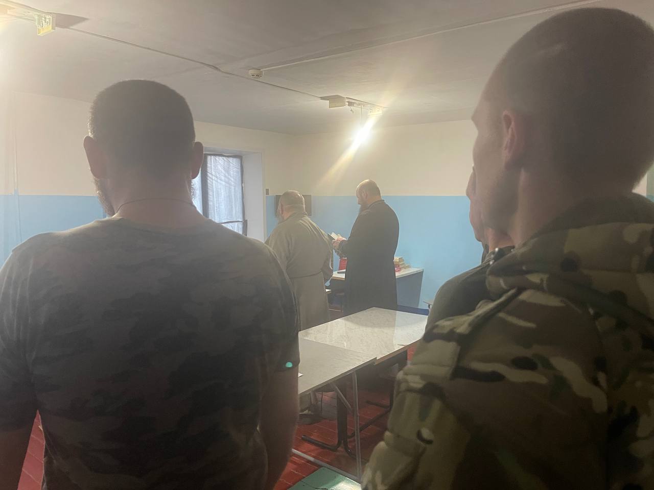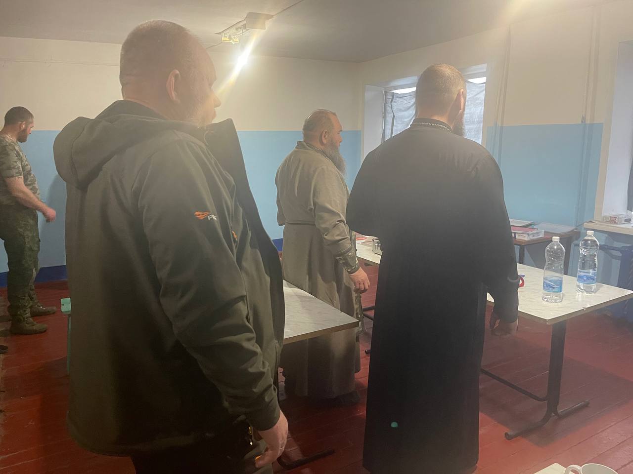 Священников сопровождали: муниципальный руководитель МОО СДД (Союз Добровольцев Донбасса) г. Озёрска Челябинской области Фомин Андрей Станиславович и волонтёры из Челябинской области. Солдатам была передана гуманитарная помощь и письма от воспитанников школ и детских садов. Священники посетили несколько точек вдоль линии фронта, где пообщались с бойцами. Желающие исповедались и причастились Святых Христовых Тайн.