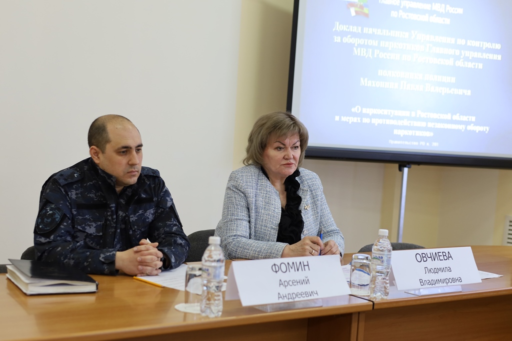 С докладами на заседании выступили Павел Махонин, начальник управления по контролю за оборотом наркотиков Главного управления МВД России по Ростовской области, Елена Теплякова, исполняющий обязанности министра здравоохранения Ростовской области, Олег Жеухин, министр по вопросам обеспечения безопасности и противодействия коррупции в Ростовской области, Алексей Чванов, начальник службы по обеспечению деятельности антинаркотической комиссии Ростовской области Правительства Ростовской области.
