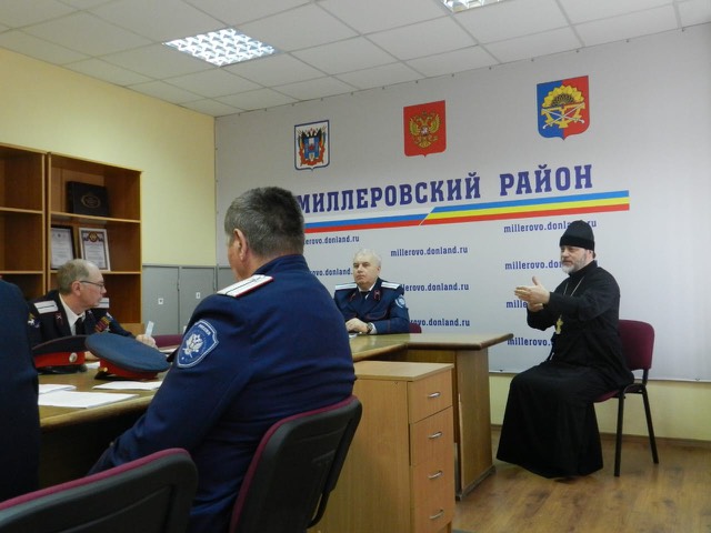 Казачий духовник иеромонах Димитрий (Яроцкий) благословил присутствующих и внес ряд предложений в график работы на предстоящее время. В частности было принято решение отслужить Панихиду с участием казаков и семей погибших на СВО воинов.