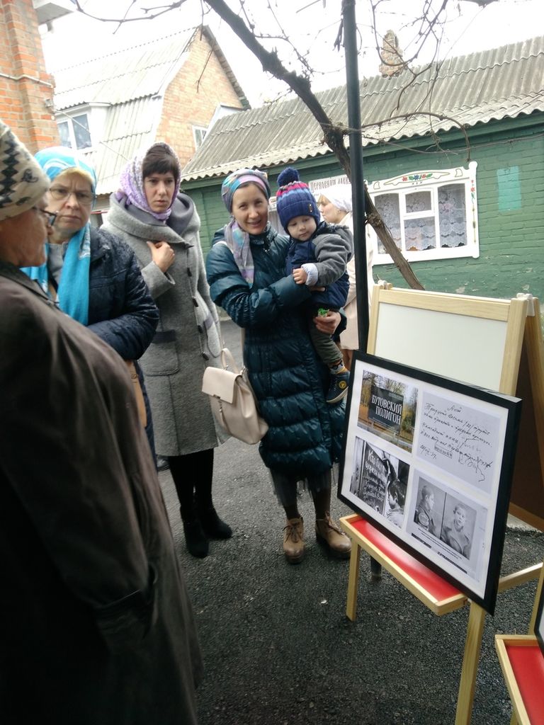 Выставка прошла в рамках памятных дат: 100-летия антицерковных гонений, дня памяти жертв политических репрессий. Тема выставки затронула всех прихожан. Активные участники семейного клуба принимают участие в поисковой работе по сбору исторической информации о жизни и подвигах подвижников благочестия – священников Иоанна Куликовского и Петра Жаханович, убитых в 1918году на территории Октябрьского района. Общаясь с местными жителями, члены молодежного семейного клуба познакомились с Валентиной Петровной К. 1927 года рождения, которая как выяснилось, была из многодетной семьи «врага народа».
