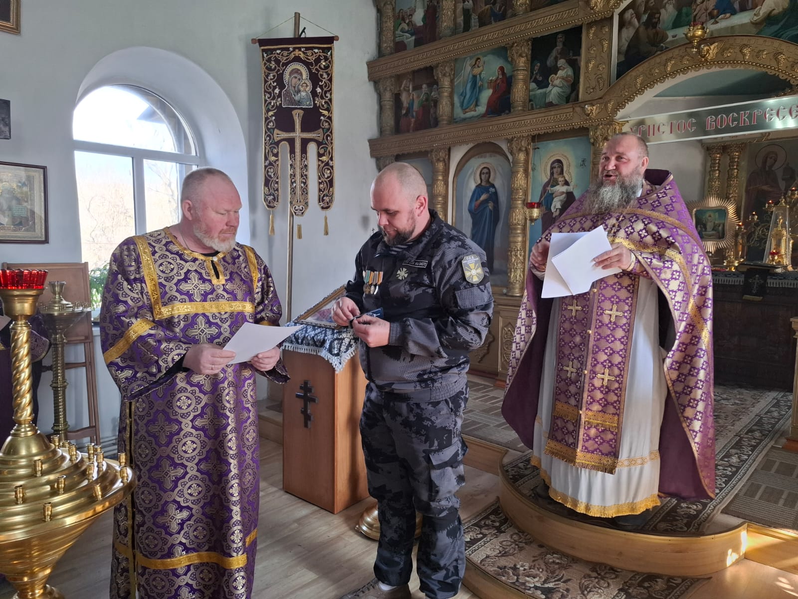 23 марта, в храме Святителя Тихона Задонского были вручены заслуженные награды прихожанам, осуществляющим волонтерскую деятельность. Благодарственные письма, шевроны и значки действующих воинских подразделений Виктор Логвиненко и Антон Мукаев получили из рук участника СВО, руководителя регионального отделения Союза добровольцев Донбасса Андрея Фомина.