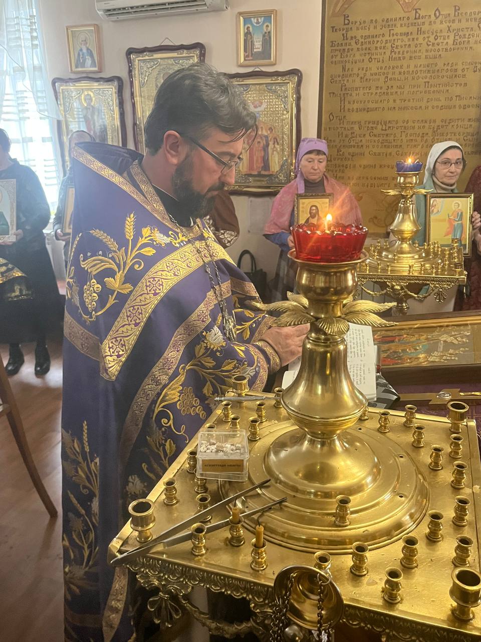 По окончании богослужения настоятель обратился к прихожанам со словом проповеди, в котором рассказал о духовном значении праздника Торжества Православия и его исторических корнях.