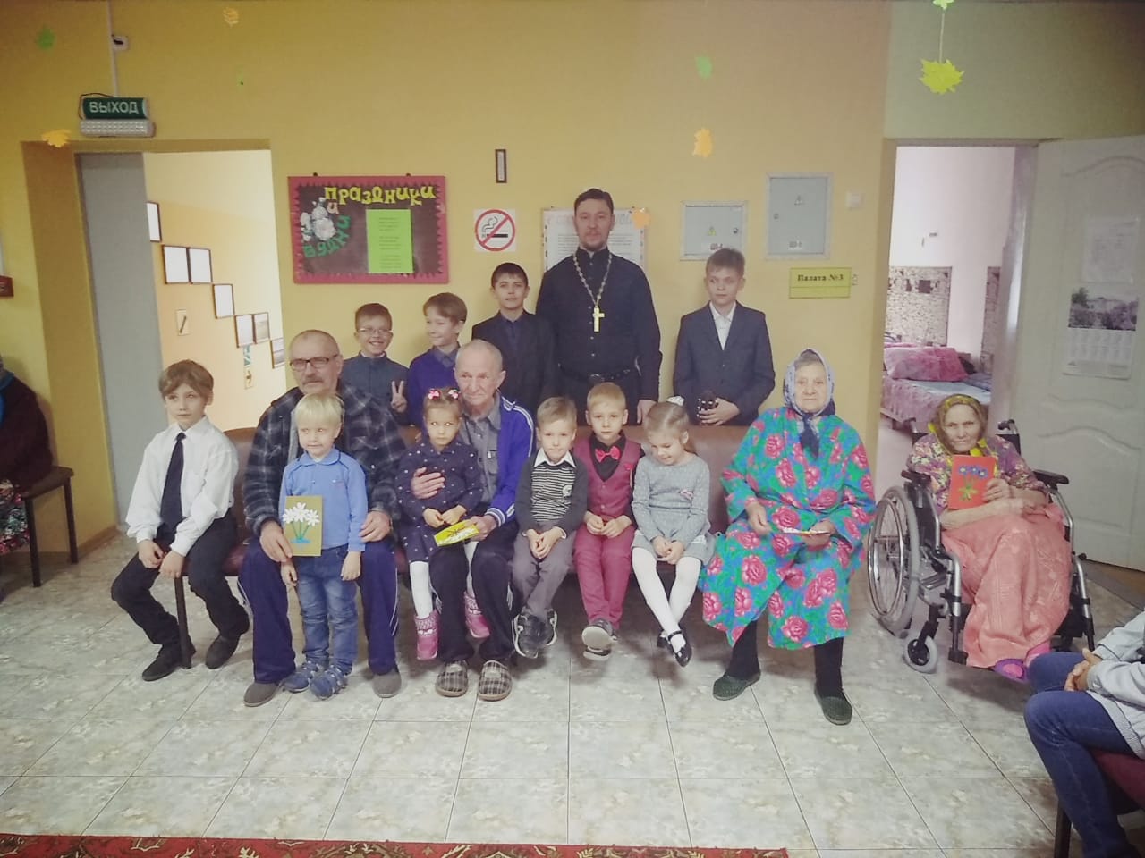 Поздравить пожилых людей с праздником приехали также преподаватель и воспитанники воскресной школы храма Архангела Михаила. Ребята с детской искренностью и непосредственностью читали стихи и пели песни, посвященные торжеству, дарили, сделанные на занятиях поделки. А иерей Роман напомнил историю праздника государственного и церковного и пожелал всем присутствующим почаще обращаться в молитвах к Божией Матери, Которую мы недаром именуем Заступницей Усердной рода христианского.