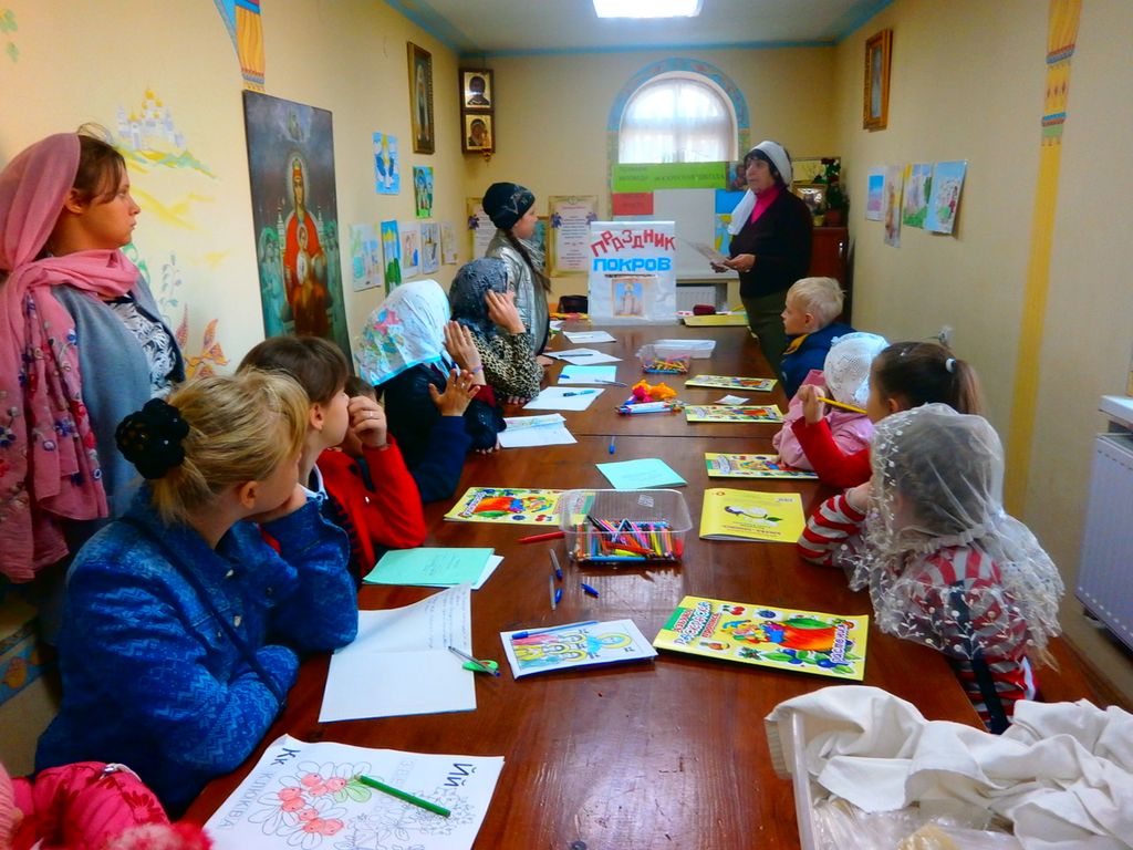 В праздника Покрова Богородицы, в воскресной школе «Держава» при храме Державной иконы Божией Матери До состоялось занятие, посвященное иконе Божией Матери Покров