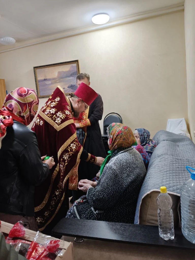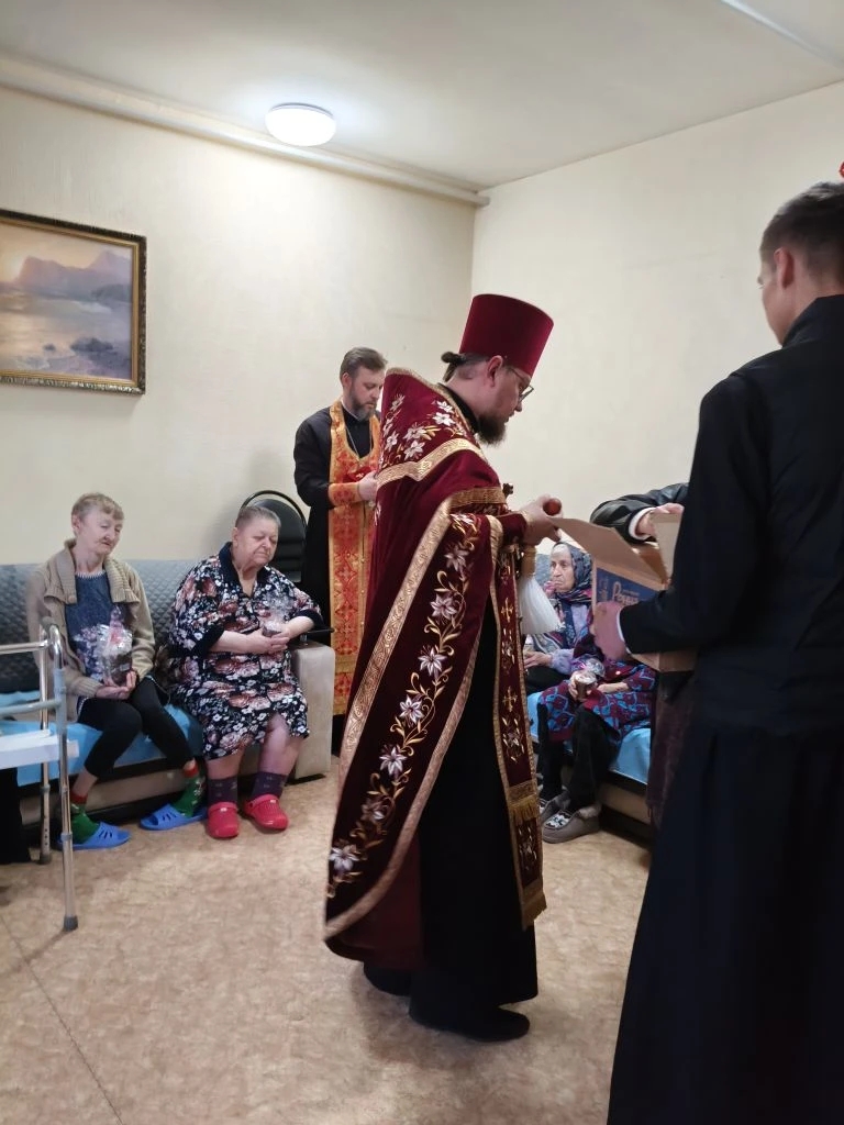 В день Пасхи, 12 апреля, благочинный Сулинского округа иерей Александр Тимошенко, настоятель храма иконы Божией Матери «Всех скорбящих Радость» иерей Илья Буланов и прихожане храмов посетили социально-реабилитационное отделение №4 города Красный Сулин. Верующие причастились Святых Христовых Таин, а вместе с остальными пациентами и персоналом получили куличи и крашеные яйца по случаю праздника Пасхи.