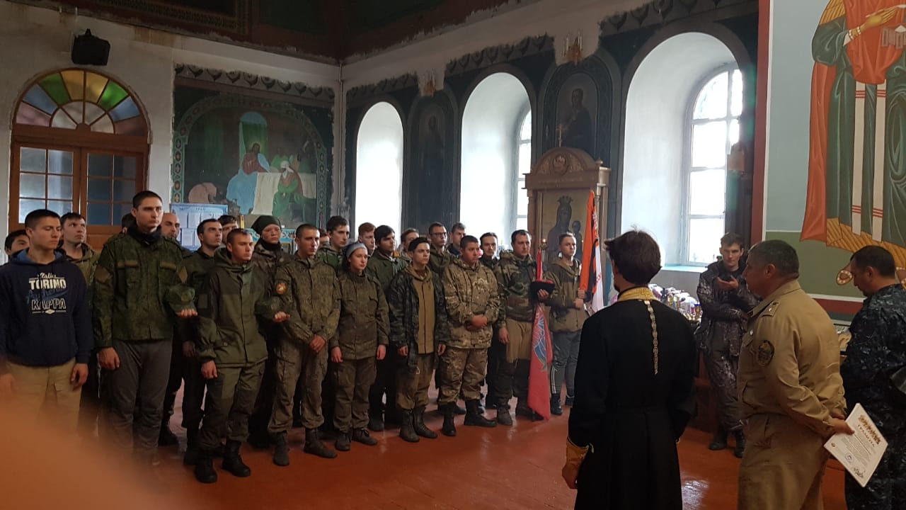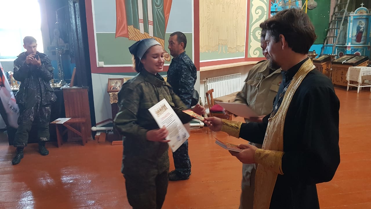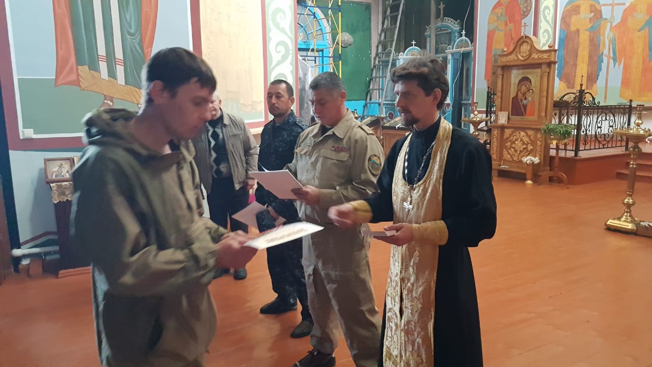 Вернувшихся на исходные позиции, бойцов отряда награждали грамотами в Бессергеневской – в храме святителя Алексия, митрополита Московского. С благодарственным словом к ним обратился настоятель храма протоиерей Андрей Поздняков, который, по сложившейся традиции, провожает отряд в поход и встречает из него.