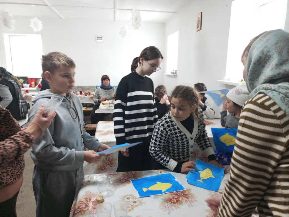 В минувшее воскресенье ученики воскресной школы с помощью кистей и красок изобразили один из древнейших христианских символов — рыбу.