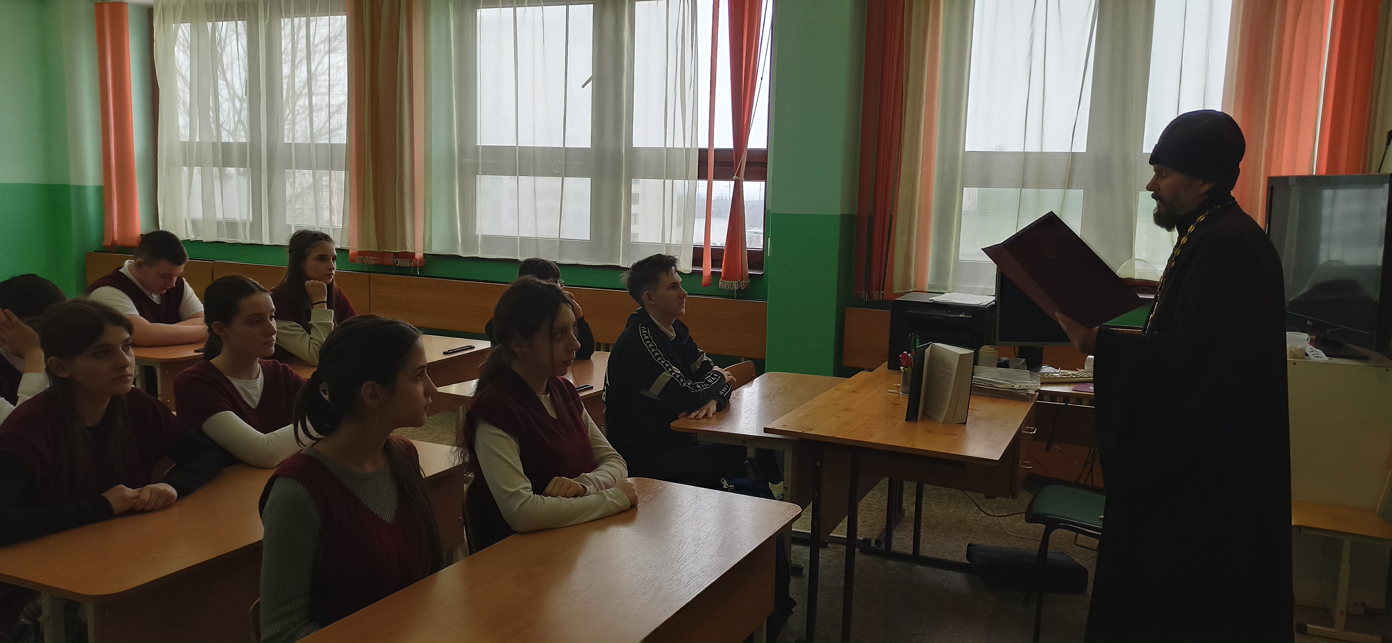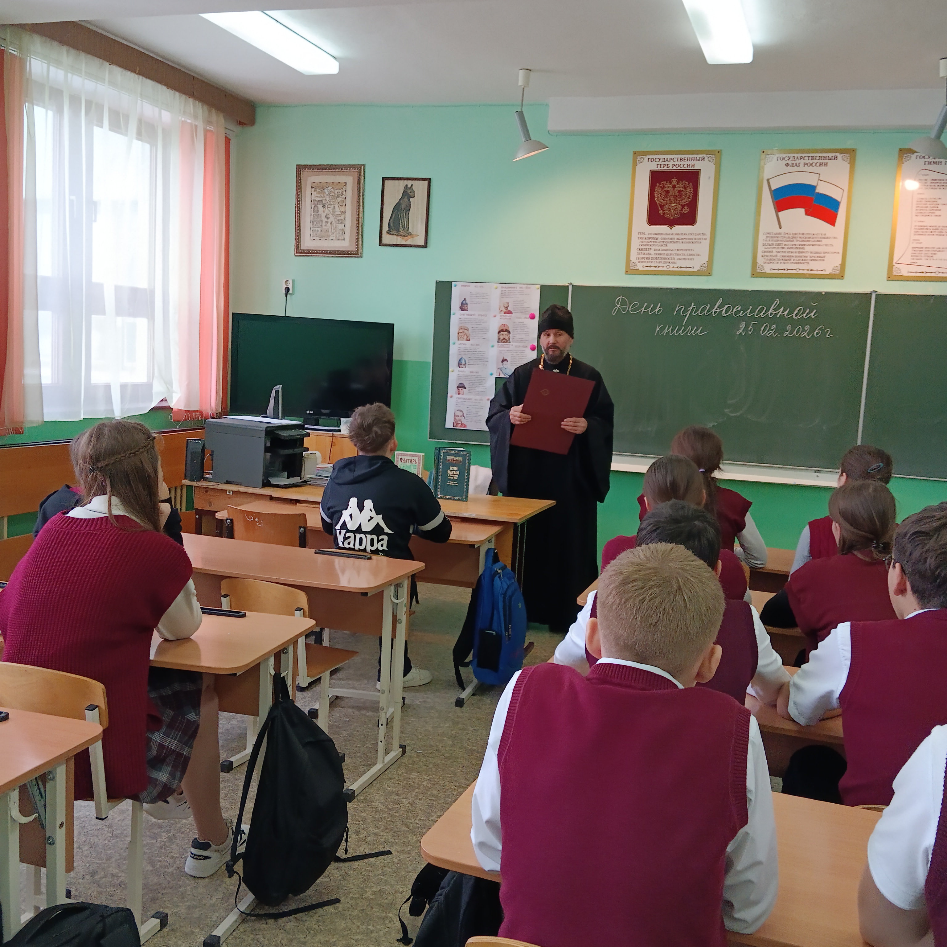 Первая беседа прошла 25 февраля с учащимися 8 «А» класса. 26 февраля состоялись ещё две встречи. В первой приняли участие ученики 2 «А», 2 «Б» и 6 «А» классов, во второй — учащиеся 2 «В» класса. В ходе бесед священник рассказал ребятам о значении православной книги в жизни верующего человека. Школьники проявили искренний интерес: внимательно слушали, активно задавали вопросы и участвовали в обсуждении.