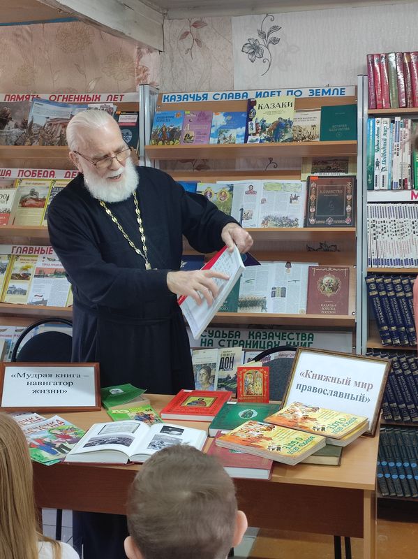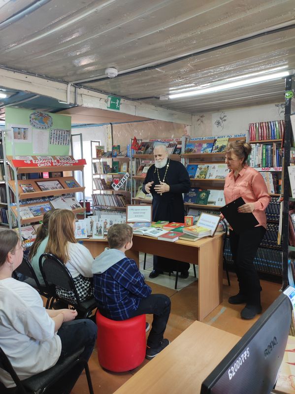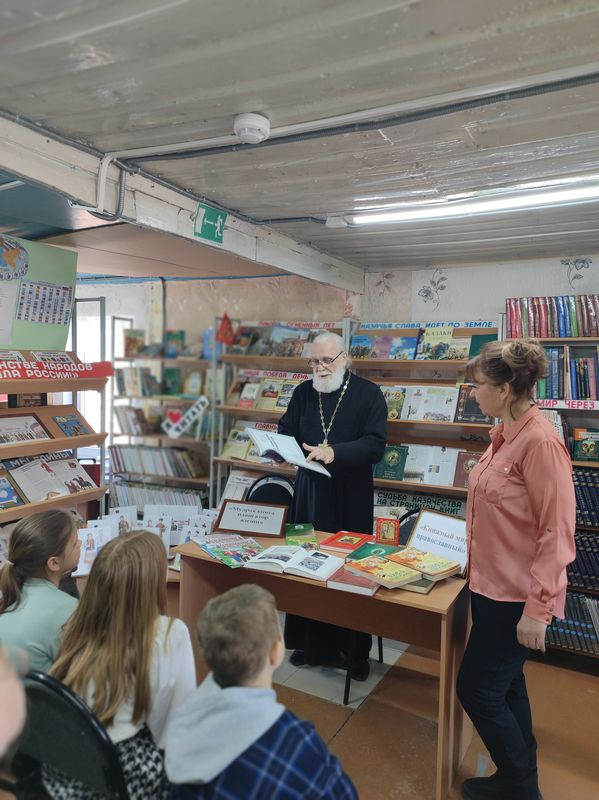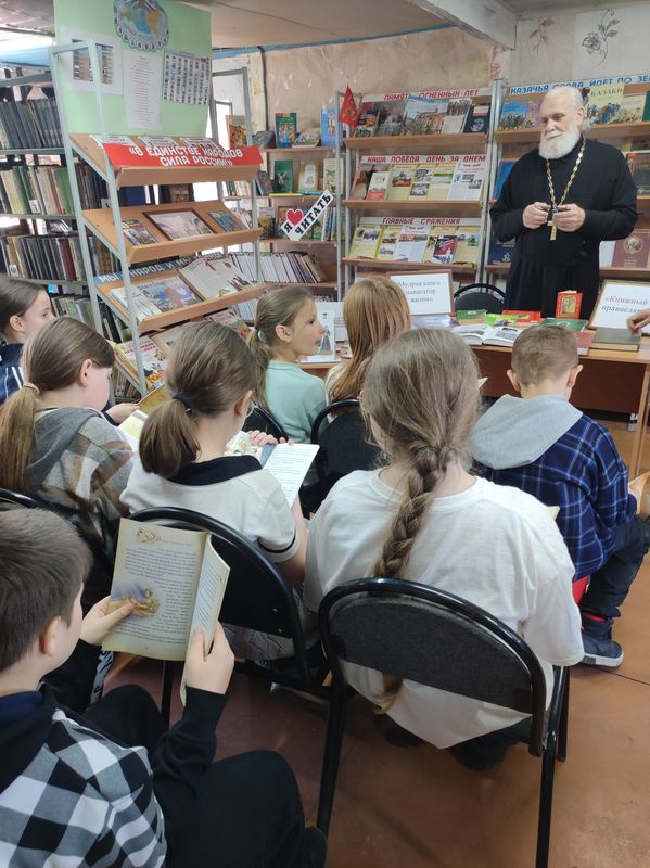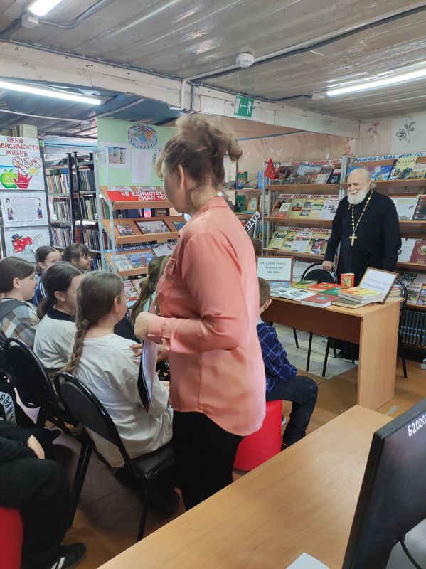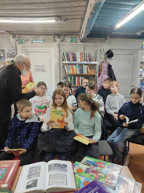 В завершение встречи отец Константин подарил всем присутствующим книгу «Вопросы детей о Боге». Он напомнил, что христианская книга включает не только священные тексты и богословские труды, но и произведения художественной литературы, наполненные добротой, помогающие понять смысл жизни и учащие великодушию и состраданию.