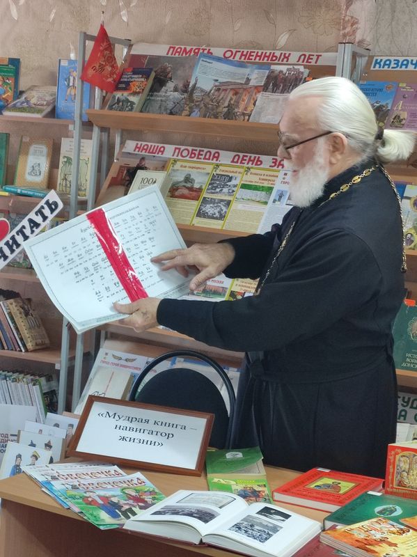 В ходе мероприятия участники познакомились с историей и традициями этой даты, узнали о значении православных книг в современном мире. Рассказ сопровождался иллюстрированной презентацией. Отец Константин показал детям древнерусский алфавит, которым пользовались при создании первых книг на Руси.