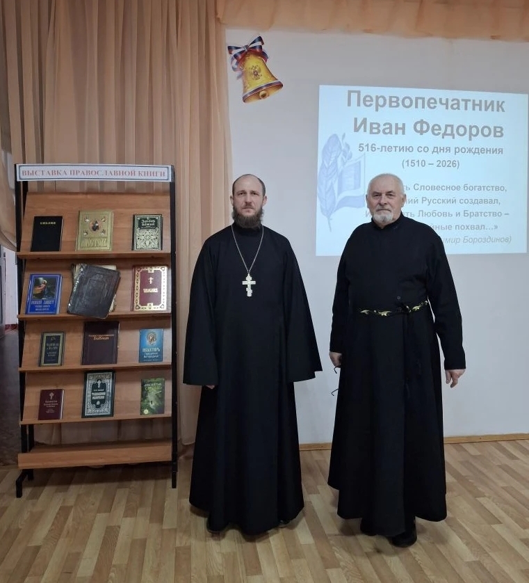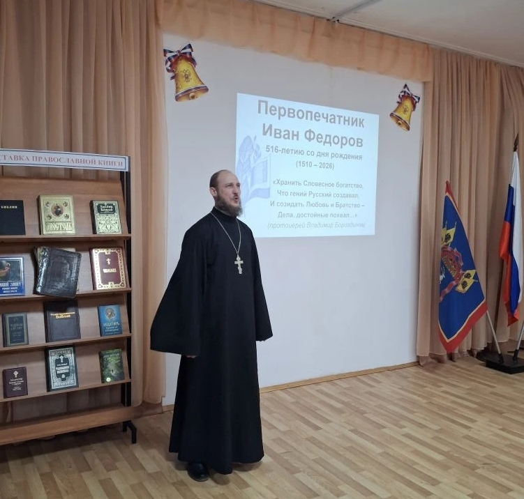На празднике присутствовал настоятель храма святого апостола и евангелиста Иоанна Богослова в х. Красный иерей Андрей Перьков. Священник принял участие в открытии выставки, рассказал об основных богослужебных книгах и о роли книгопечатания в духовном и культурном развитии человека.