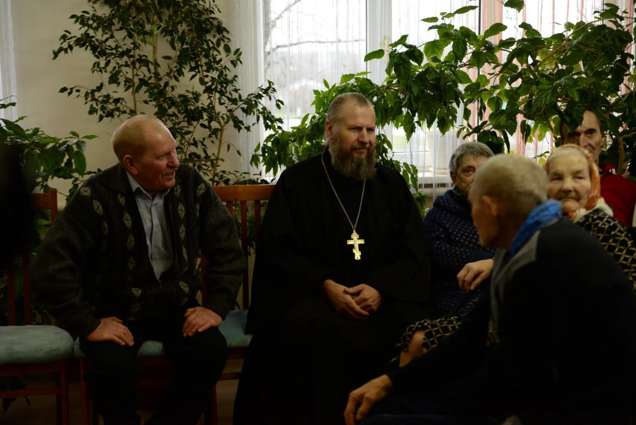 По случаю юбилея в Дом-интернат был приглашен клирик нашей епархии, иерей Алексий Дмитриенко. Отец Алексий разделил с обитателями и сотрудниками учреждения радость торжественного дня, вознеся совместную молитву о здравии всех труждающихся и проживающих в этом богоугодном месте.