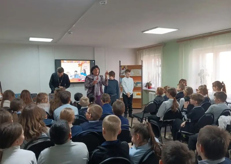 Протоиерей Глеб Гладышев провёл встречу с учениками четвёртых классов, собравшую 75 человек. Обращаясь к ребятам, священник поздравил их с Днём православной книги и отметил его особую значимость для современного общества. В своём слове он подчеркнул, что книга всегда была и остаётся источником мудрости, а православная литература — о вере, истории Церкви и житиях святых — помогает человеку найти путь к Богу и укрепиться в добродетели.