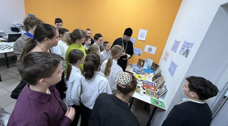Священник представил учащимся богослужебные книги, святоотеческие издания, современные православные издания и детские книги о вере. Он рассказал о их роли в формировании православного мировоззрения, рекомендовал школьникам читать добрые книги, учиться на духовном опыте прошлых веков и применять его в своей жизни.