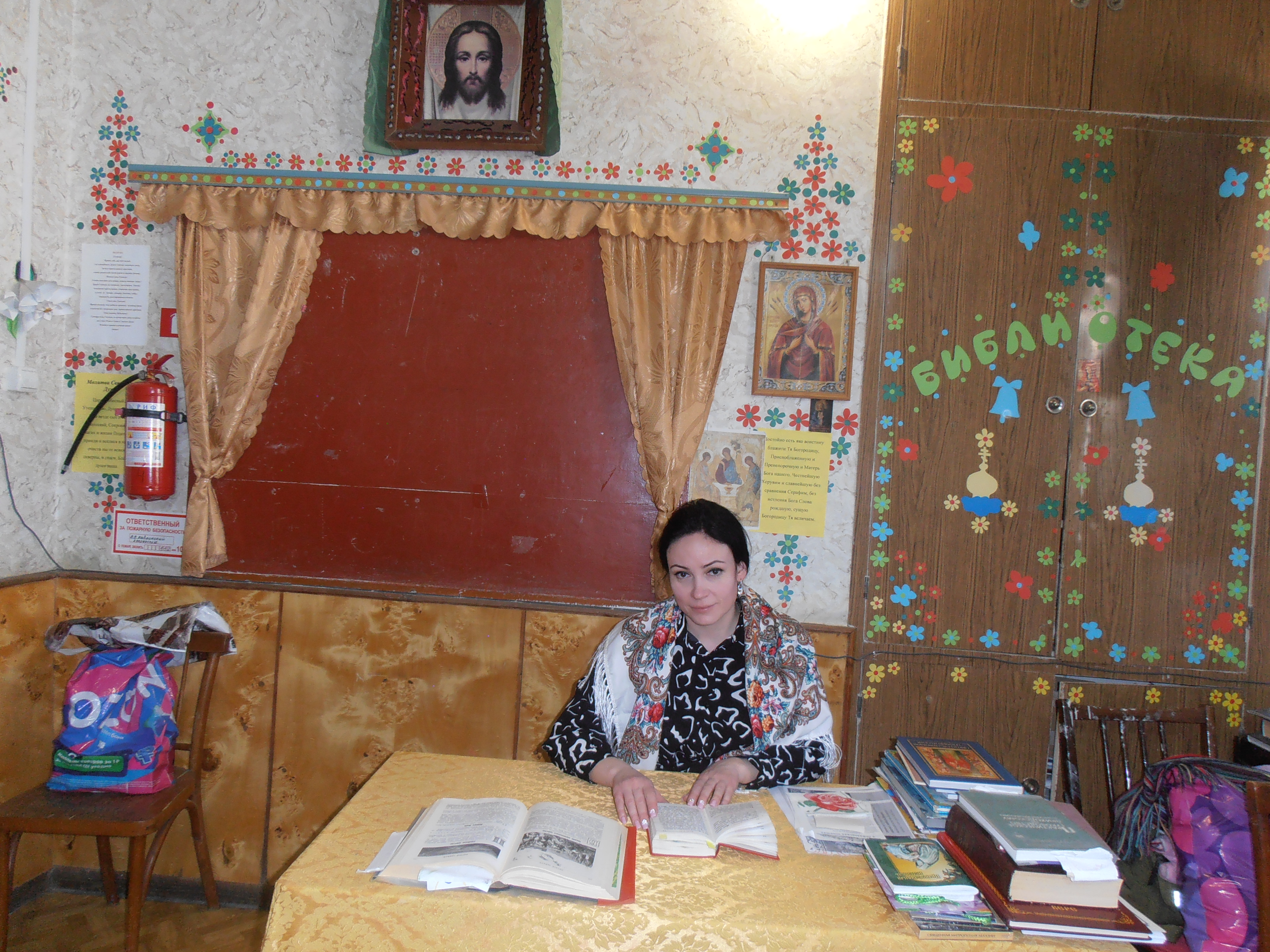 Директор школы Виктория Викторовна Галдина организовала для воспитанников и их родителей выставку современной и старопечатной православной литературы. Она рассказала о трудах первых книгопечатников, о значимых событиях истории Отечества, связанных с православной книгой. Особое внимание в беседе было уделено тому, какой след в душе человека может оставить печатное духовное слово, какой неисчерпаемый источник мудрости и благодати представляет собой православная книга.
