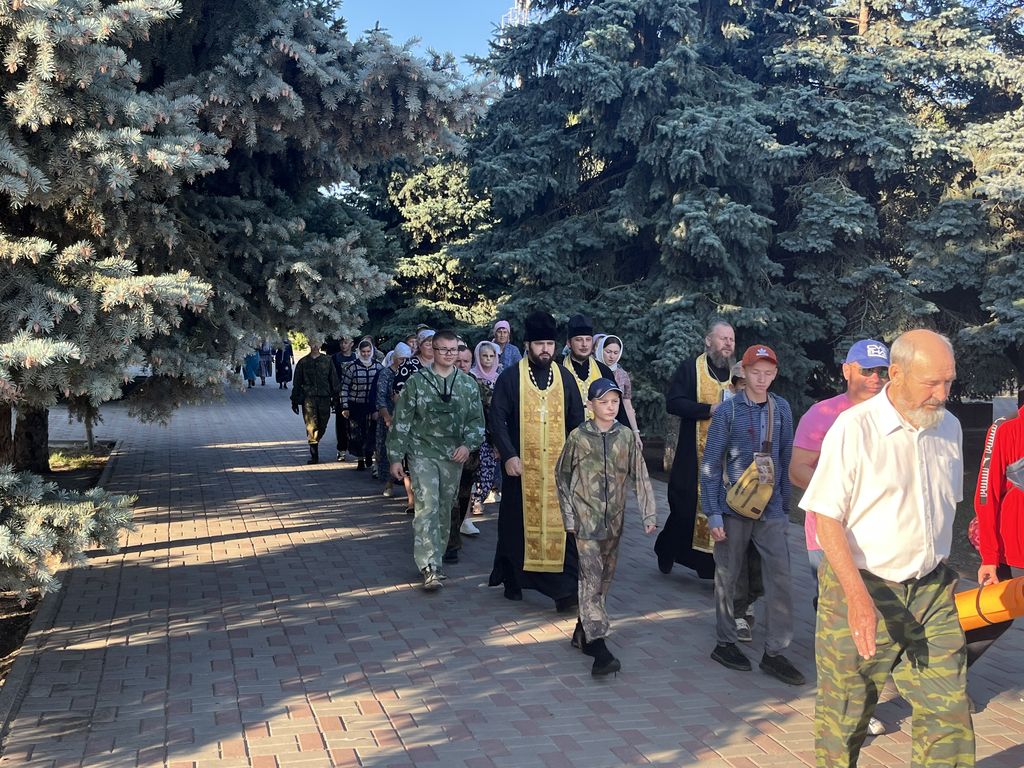 Возглавили шествие духовник Верхне-Донского округа Всевеликого Войска Донского, благочинный Чернышевского округа иерей Александр Левчик, благочинный приходов Верхне-Донского благочиния иерей Роман Митяшин, настоятель храма Покрова Пресвятой Богородицы сл. Никольской иерей Георгий Лукащук, настоятель храма «Чуда Архистратига Михаила» х. Пономарев иерей Алексей Дмитриенко, настоятель храма святителя Николая Чудотворца ст. Усть-Хапёрской протоиерей Виктор Горин, диакон Борис Юров и диакон Алексий Ряшкин.