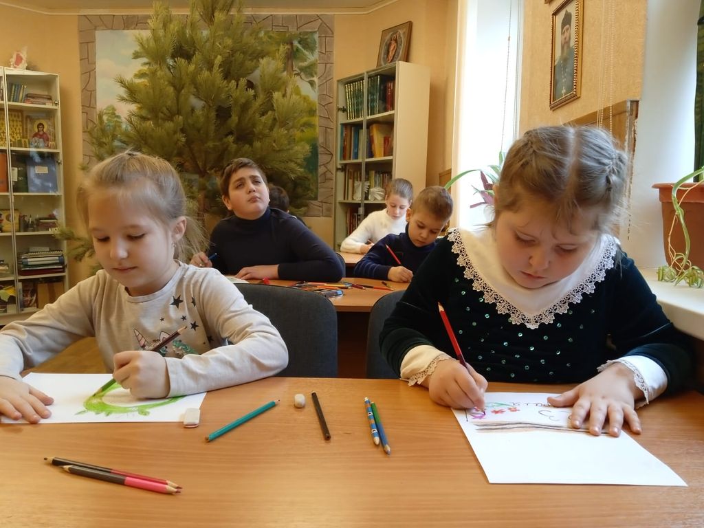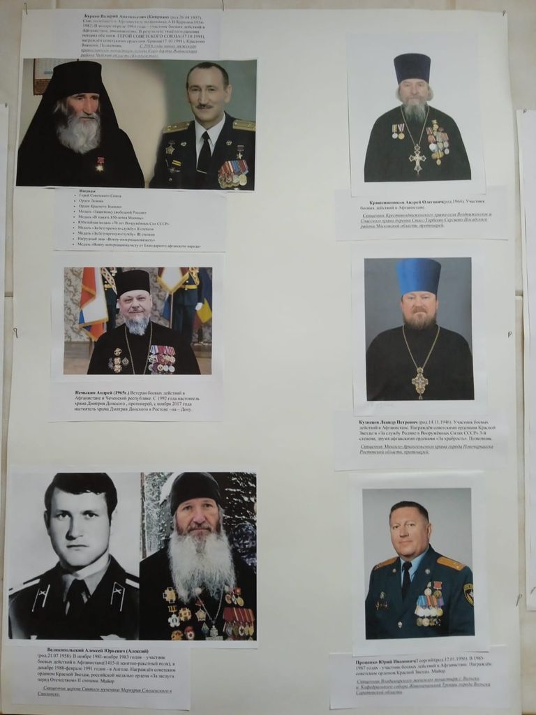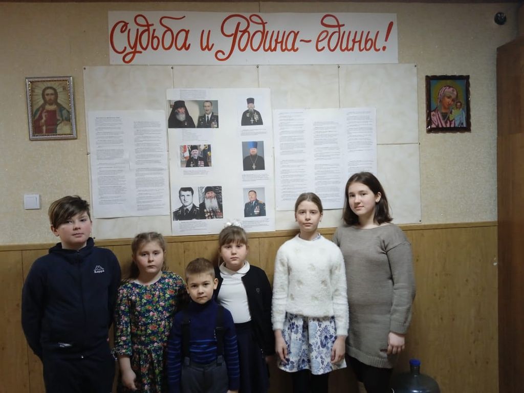 В преддверии празднования Дня защитника Отечества педагоги воскресной школы «Азы Православия» Донецкого Успенского архиерейского подворья Суханова Т.В. и Артюшенко З.А. предложили учащимся старшей группы подготовить доклад о священниках Русской Православной Церкви, прошедших военную службу в «горячих точках». Из полученных материалов дети оформили стенгазету.