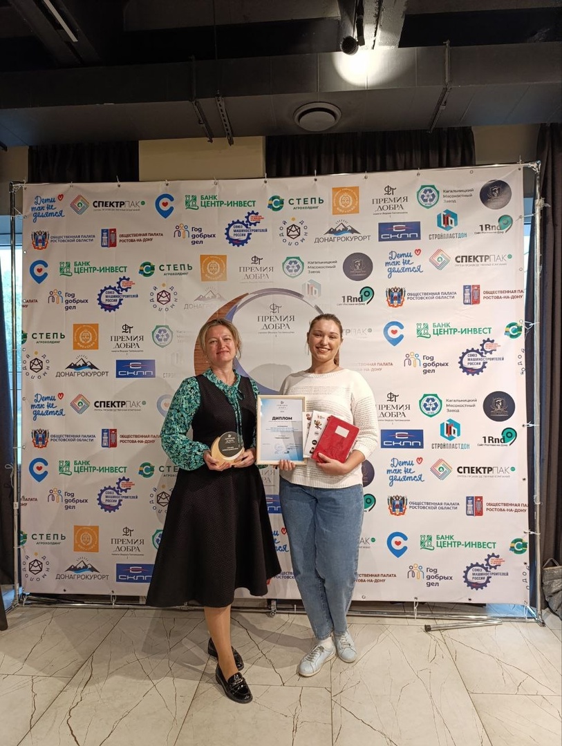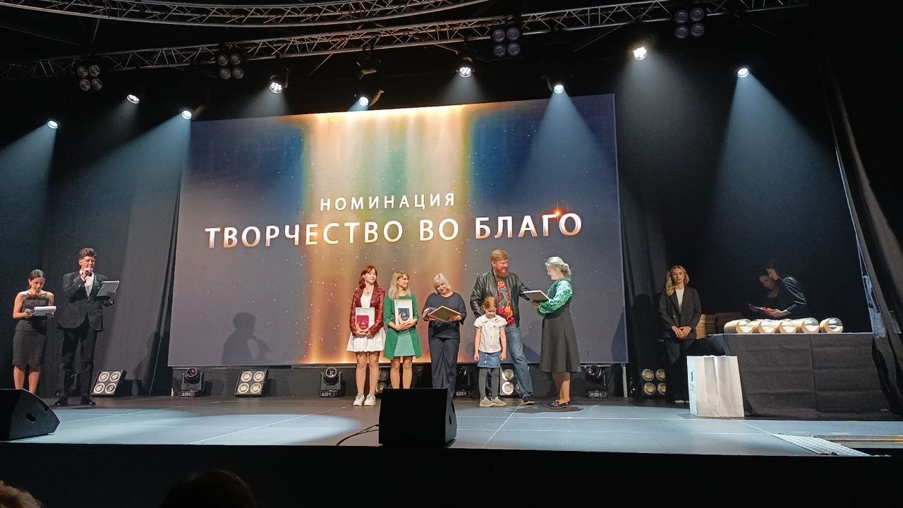 Конкурс духовной поэзии и прозы «Всякое дыхание да хвалит Господа!», который ежегодно проводится Свято-Пантелеимоновским приходом г. Гуково стал лауреатом в номинации «Творчество во благо». Хочется отметить, что весной 2024 года наш конкурс чтецов проводился уже в восьмой раз. А последние три года эту инициативу поддерживает Фонд президентских Грантов в рамках проекта Учебный театр «Воскресение». Очень почетно и волнительно было получить Премию Добра из рук жизнерадостного, талантливого и очень позитивного Ростовского художника Максима Ильинова.