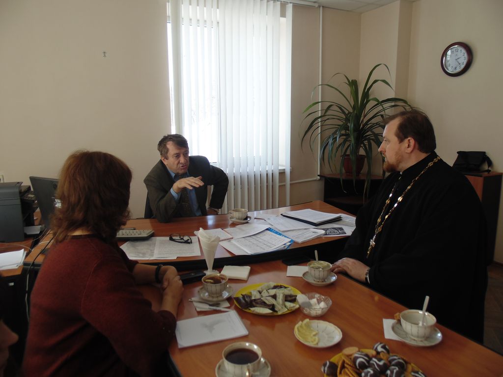 В ГКУ РО Центр занятости населения г. Новошахтинска прошел круглый стол с участием директора ГКУ РО Центр занятости населения г. Новошахтинска Абрамичева Дмитрия Кузьмича; руководителя Отдела по взаимоотношениям Церкви с обществом Шахтинской епархии протоиерея Романа Амплеева, помощника благочинного Новошахтинского округа по взаимодействию Церкви с обществом Саханиной И.В, работников центра занятости, Соляной Нины Павловны руководителя АНО центра по социальной реабилитации инвалидов и других категорий граждан «Добро».