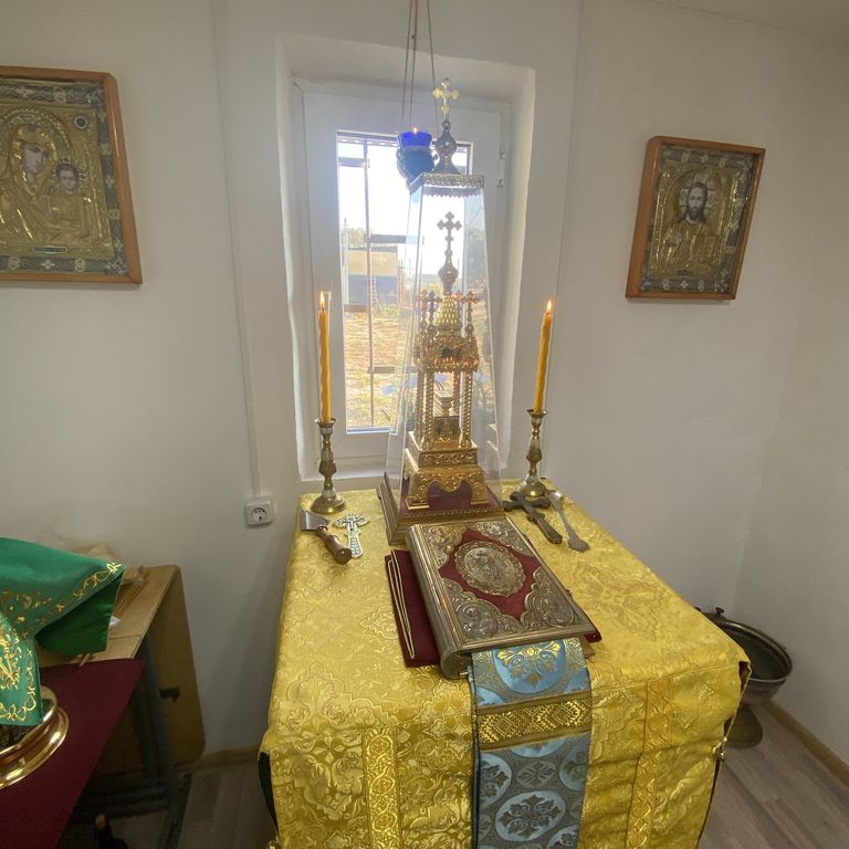 Трудами настоятеля храма иерея Владимира Татаркина, первых прихожан и активных жителей поселка в кратчайшие сроки вагончик был подготовлен для временного совершения богослужений. Установлены купол и крест. В ближайшее время будет установлена звонница.