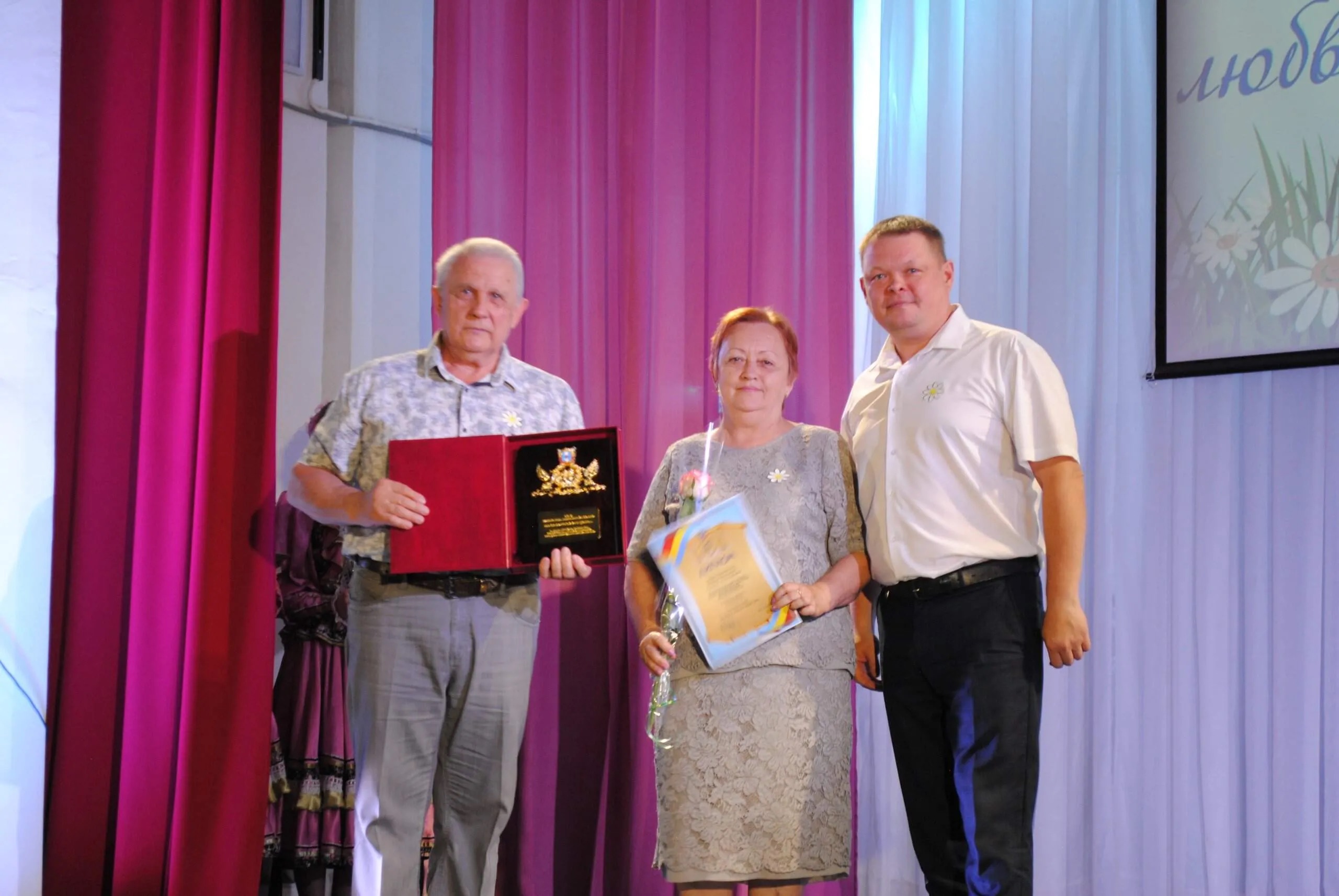 Зрители аплодисментами приветствовали супружеские пары и дружные семейные династии, которые сегодня были почетными гостями праздника.