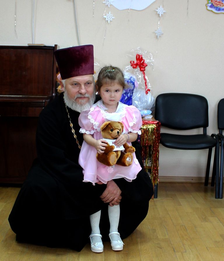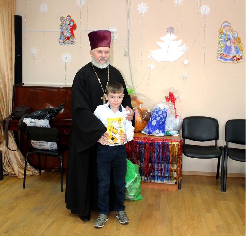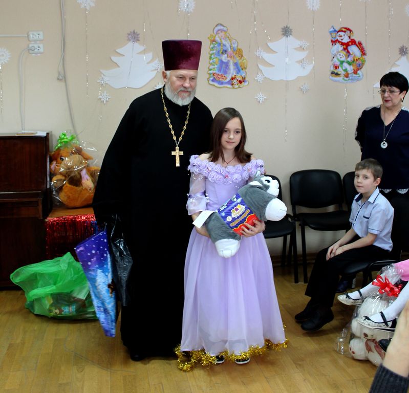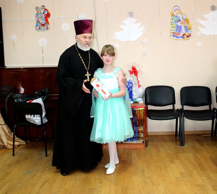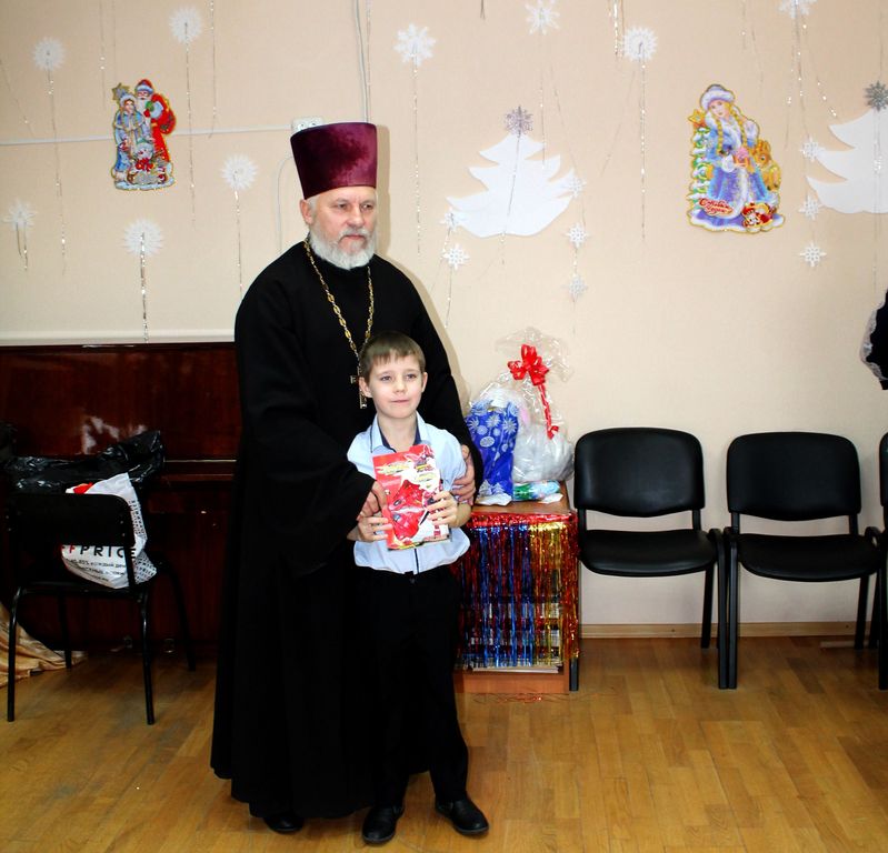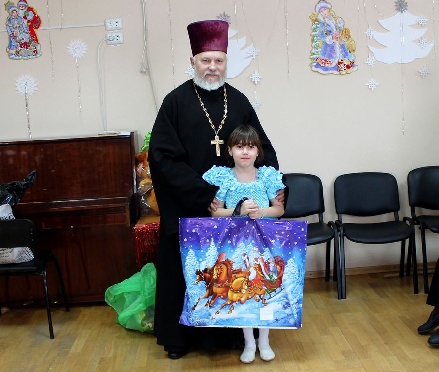 После небольшого концерта иерей Олег подарил мальчикам и девочкам подарки, а также пригласил всех присутствующих на праздничное рождественское мероприятие в ГДК «Гуковский», которое организовано в рамках реализации проекта учебного православного театра «Воскресение».