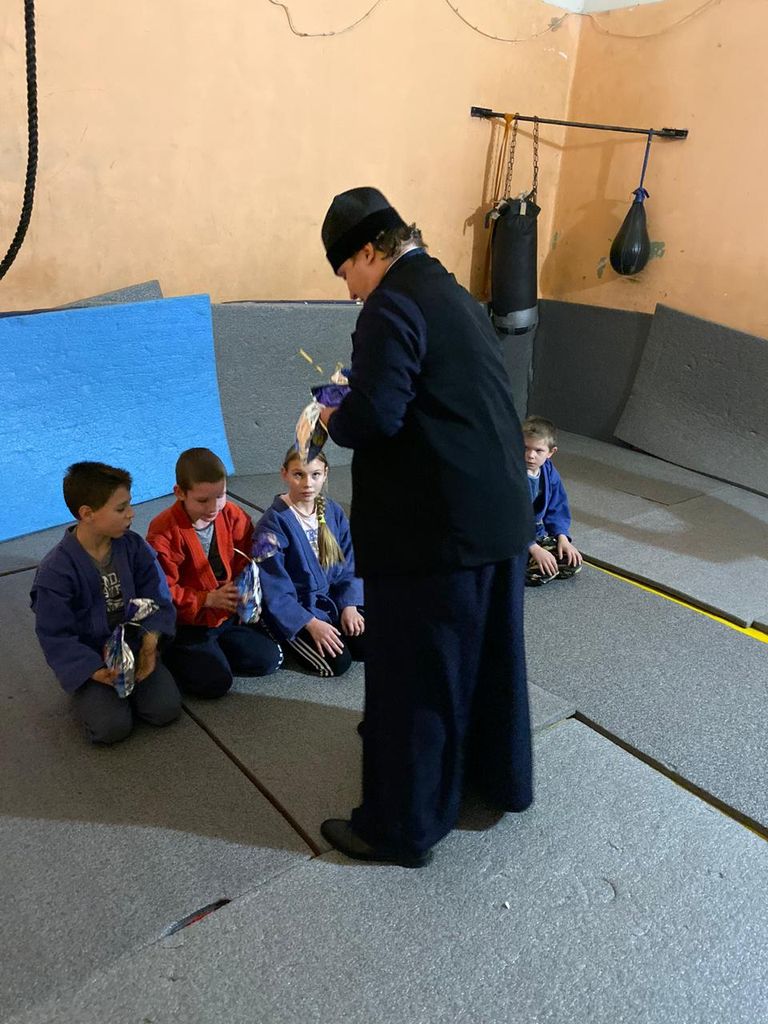Настоятель Успенского храма станицы Калитвенской иерей Игорь Лосев посетил станичную секцию дзюдо.