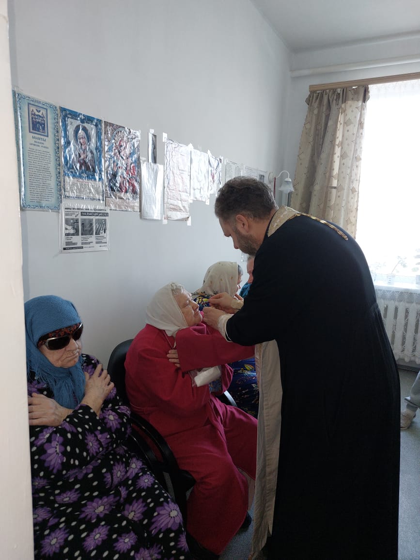 Священник совершил таинства Исповеди и Причастия, помолился о здравии постояльцев и работников учреждения, а затем обратился к присутствующим со словами назидания и утешения, а также рассказал о смысле поста и приготовительных недель к Великому посту.