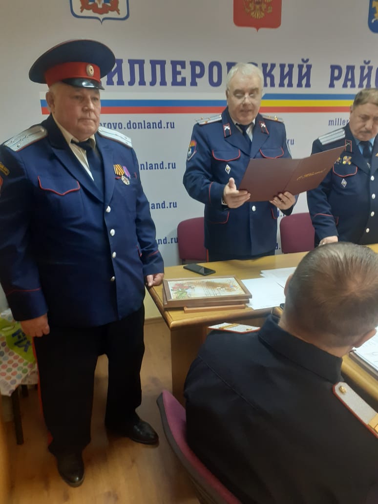 На заседании совета атаманов поздравления с 75-летним юбилеем принимал председатель совета стариков Миллеровского юрта и станицы Миллеровской Владимир Яценко.