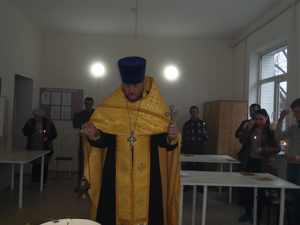 В больнице туберкулезного диспансера города Каменск-Шахтинский, настоятель храма Почаевской иконы Божией Матери протоиерей Вячеслав Лавлинский совершил в праздничный день водосвятный молебен с чтением акафиста перед образом одному из самых почитаемых в России святых – святителю Николаю Чудотворцу.