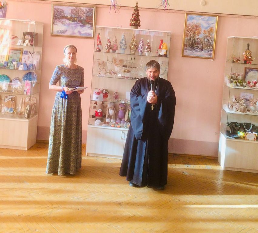 Иерей Сергий поздравил всех присутствующих с наступающими январскими праздниками и пожелал, чтобы свет Рождественской звезды всегда сиял в жизни и творчестве наших детей.