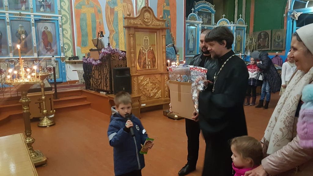 Настоятель храма протоиерей Андрей Поздняков поблагодарил детей за доставленную рождественскую радость, поздравил с праздником и подарил подарки.
