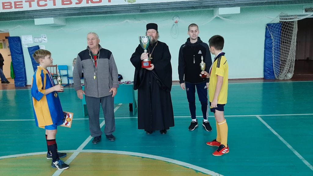 По завершении футбольного турнира протоиерей Александр вручил победившей команде переходящий кубок и медали, а участникам грамоты.