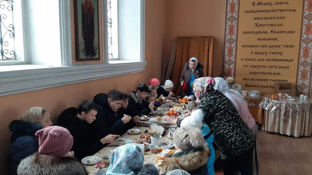 Также воспитанники школы вместе с настоятелем храма посетили Дом престарелых, где поздравили постояльцев с великим праздником Рождества Христова.