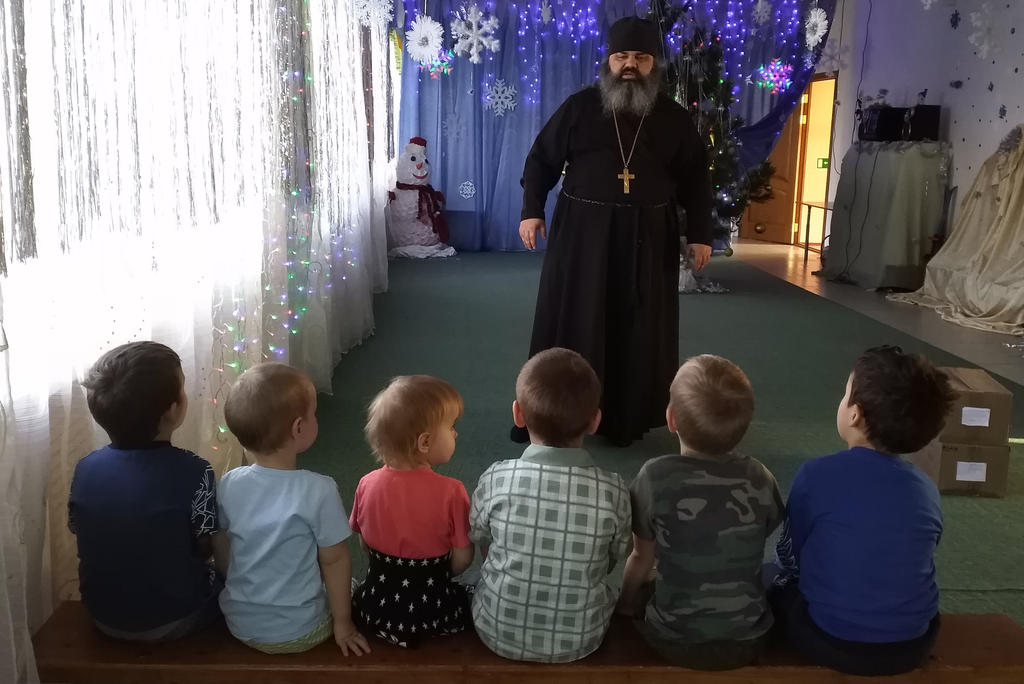 В каждом детском саду священнослужитель рассказал детям о Рождестве Христовом, объяснил значения Рождения Младенца Христа и рассказал сказку «Колобок».