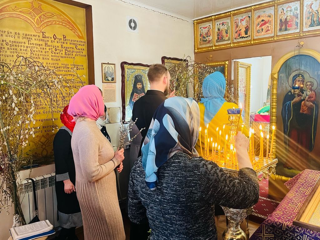 В Неделю ваий, в праздник Входа Господня в Иерусалим, в Никольском храме слободы Кашары состоялась праздничная Божественная литургия и освящение вербы
