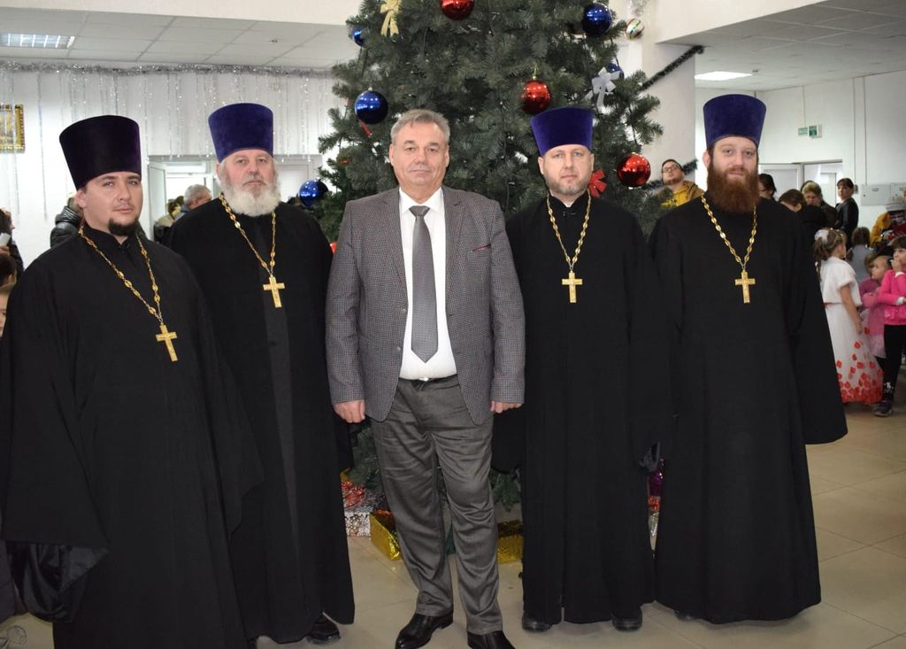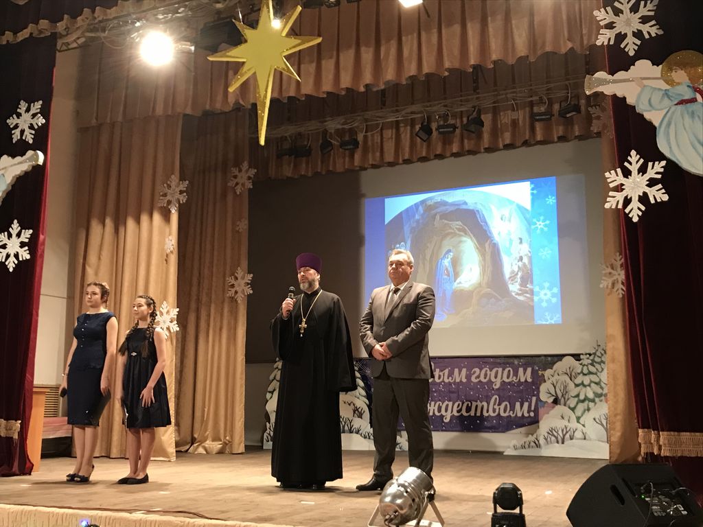 После Рождественского представления в фойе ДК детям раздавали подарки. Духовенство благочиния всех поздравило с Рождеством Христовым, а Дед Мороз и Снегурочка всех желающих пригласили на игровую программу вокруг елки.