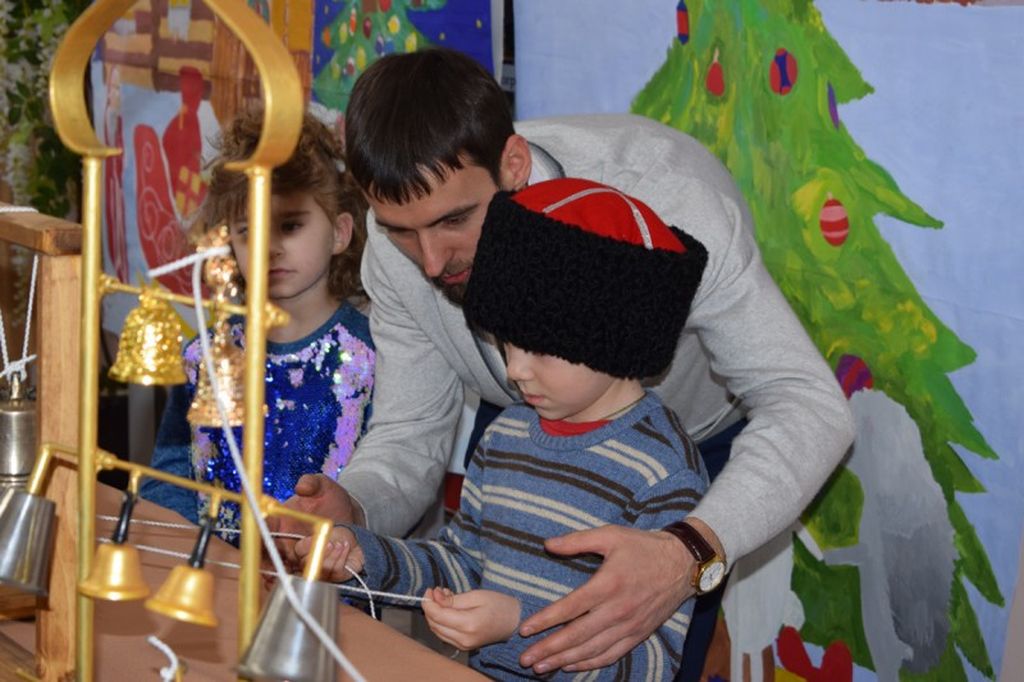 Сестры Марфо-Мариинского сестричества совместно с православным семейным клубом «Верность» при поддержке епархиального отдела культуры представили выставку «Волшебная мелодия Рождества». По благословению благочинного члены молодежного семейного клуба организовали мастер-класс по колокольному звону, где каждый желающий смог побыть в роли звонаря, создавая неповторимую мелодию Рождества.