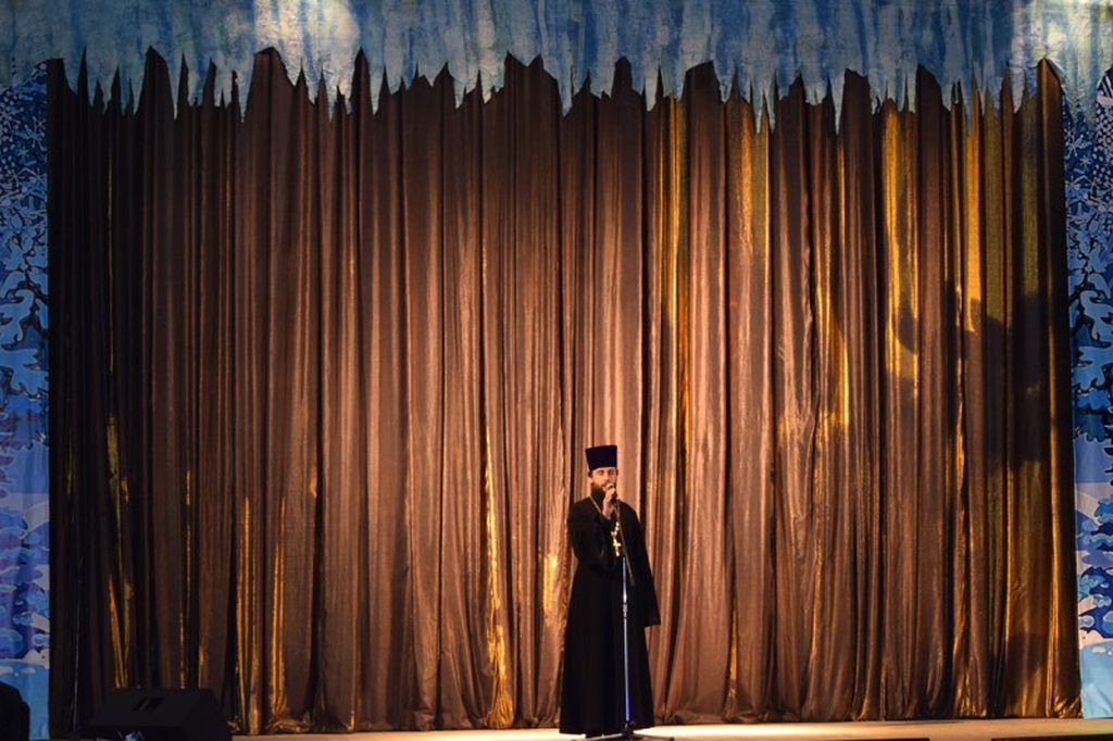 Перед участниками мероприятия выступил протоиерей Сергий Яценко, который поздравил всех присутствующих со светлым праздником Рождества Христова.