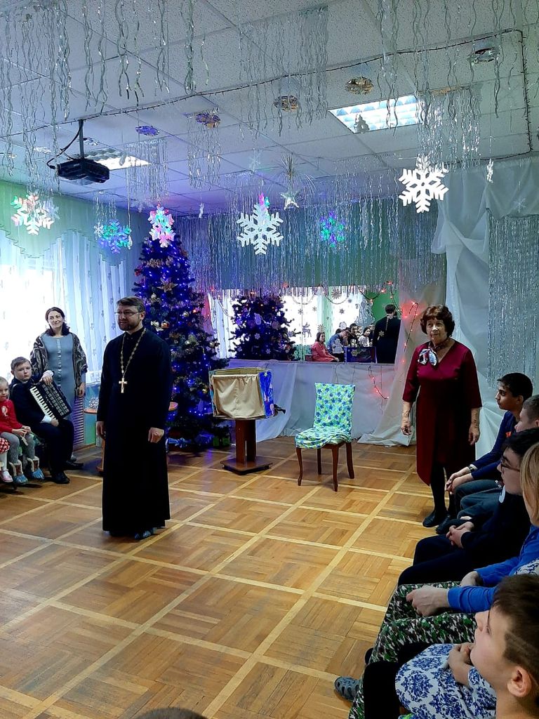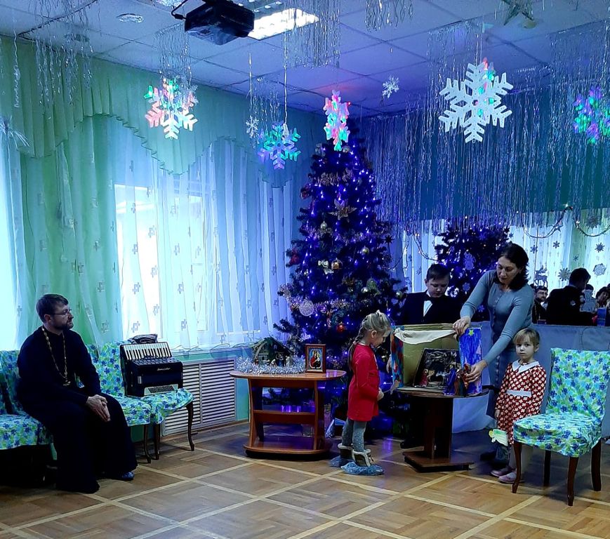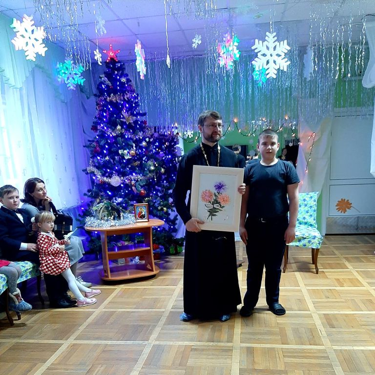 Воспитанники семейной учебно-воспитательной воскресной группы, действующей при центре, подготовили музыкальное, театрализовано-кукольное представление о рождении в Вифлееме Христа Спасителя, в конце которого дети подарили священнику памятный подарок, сделанный своими руками.