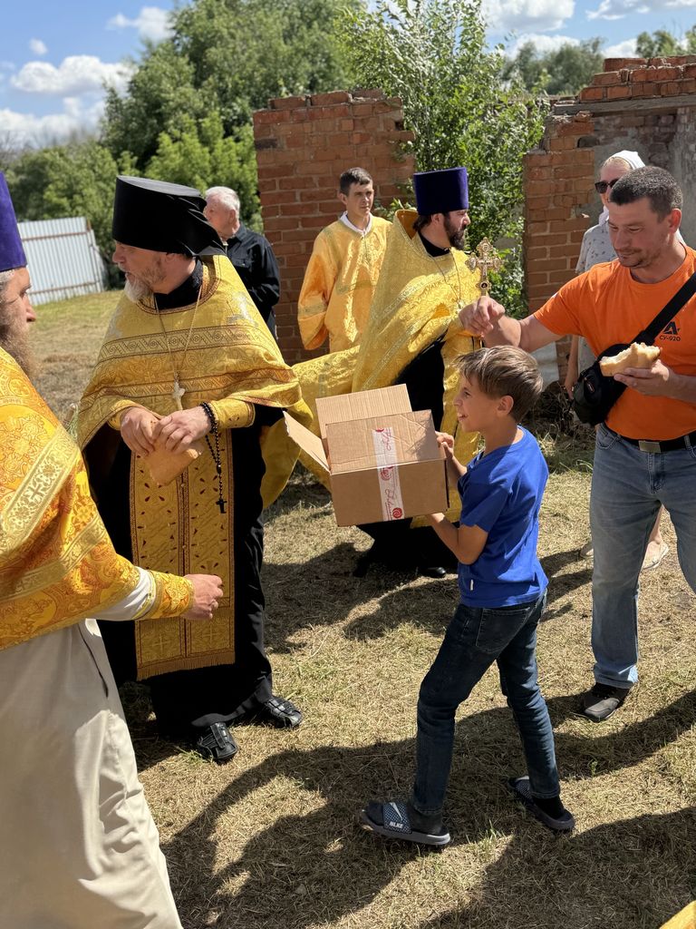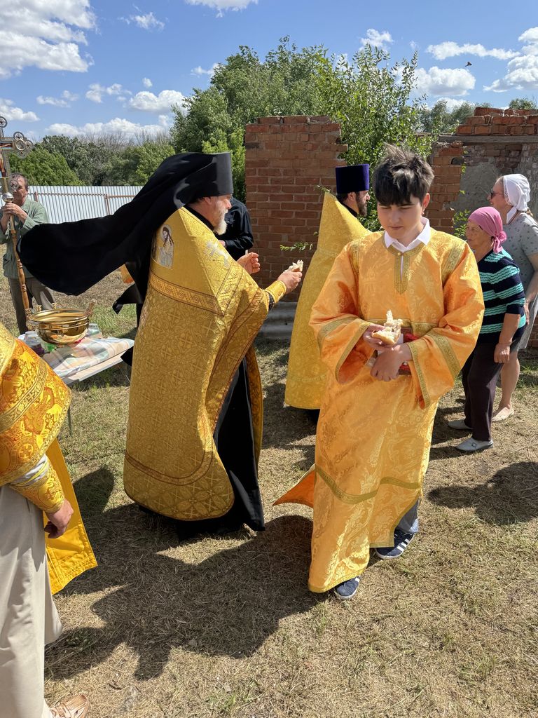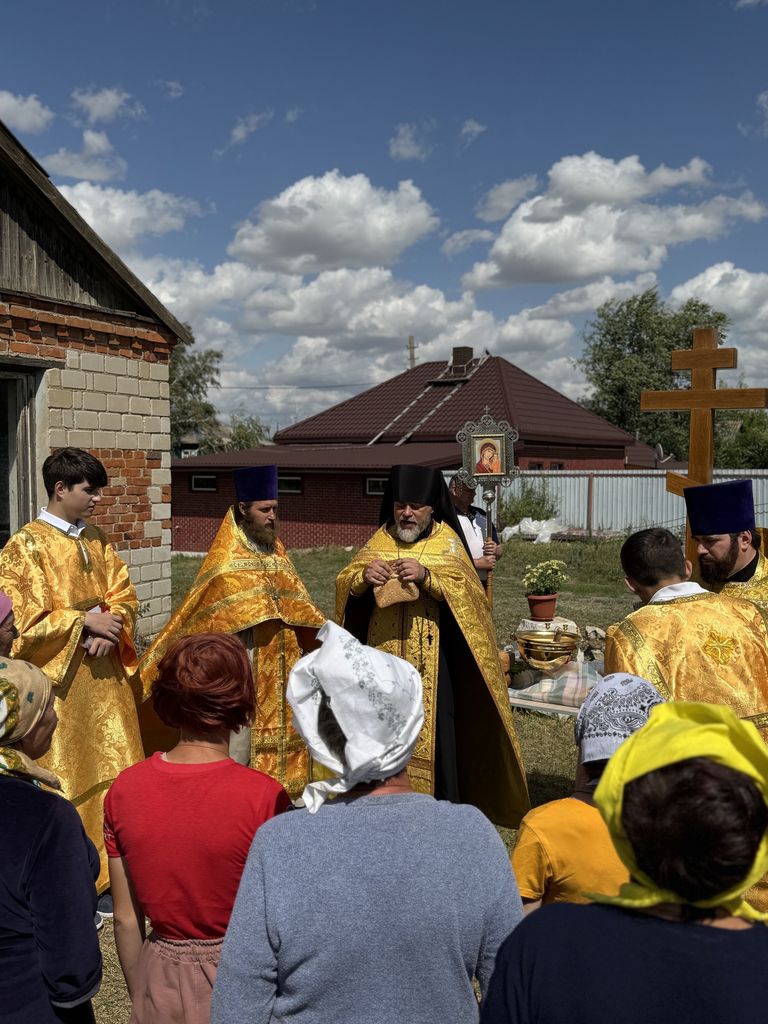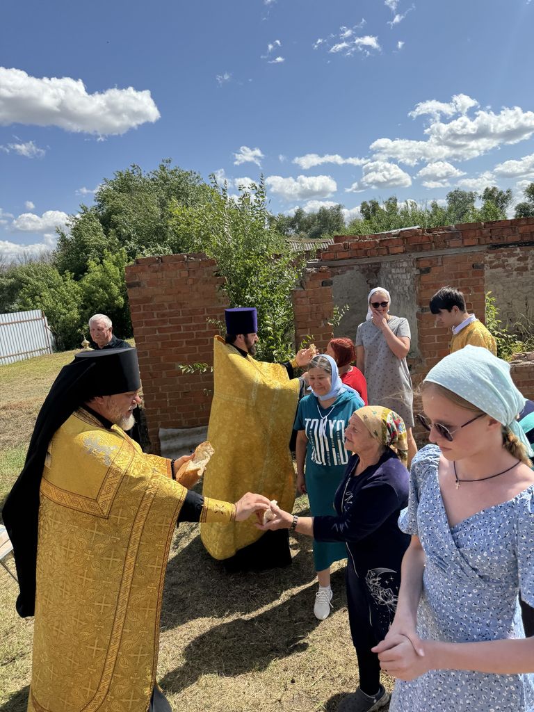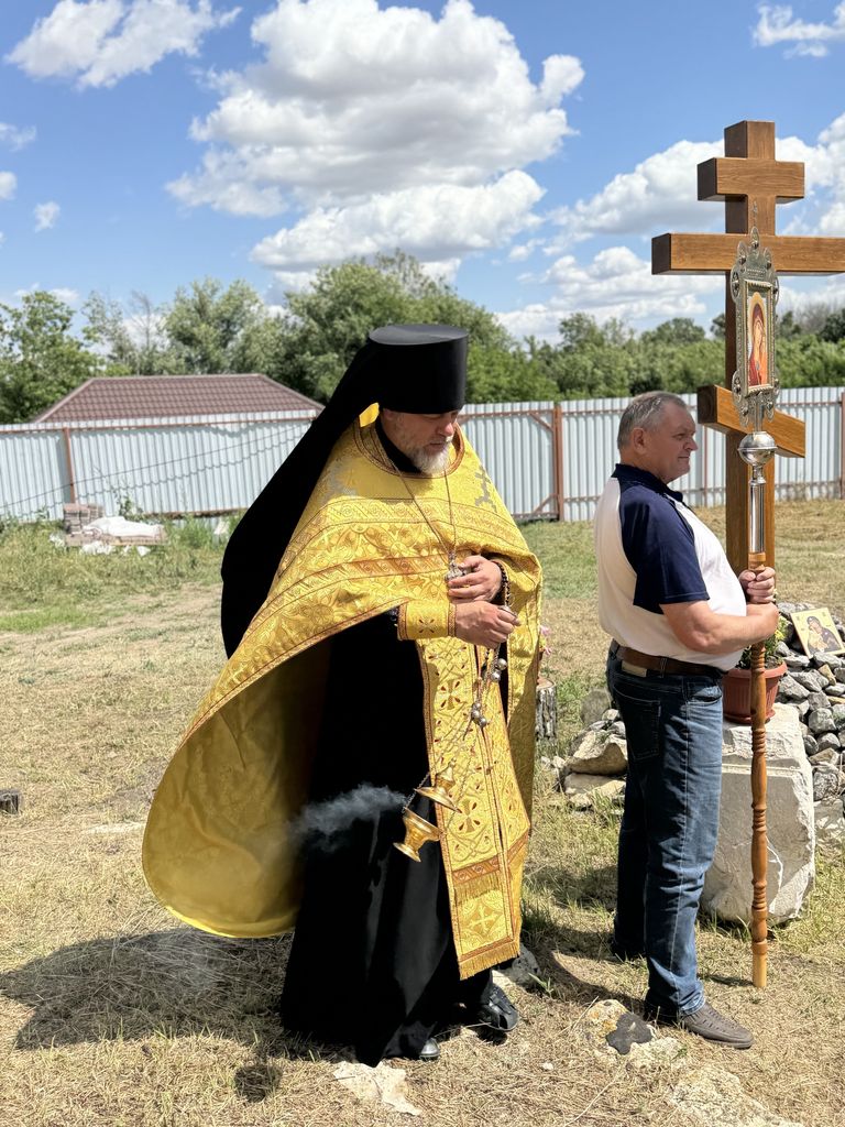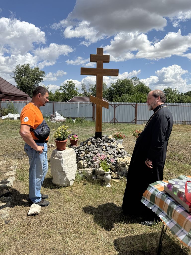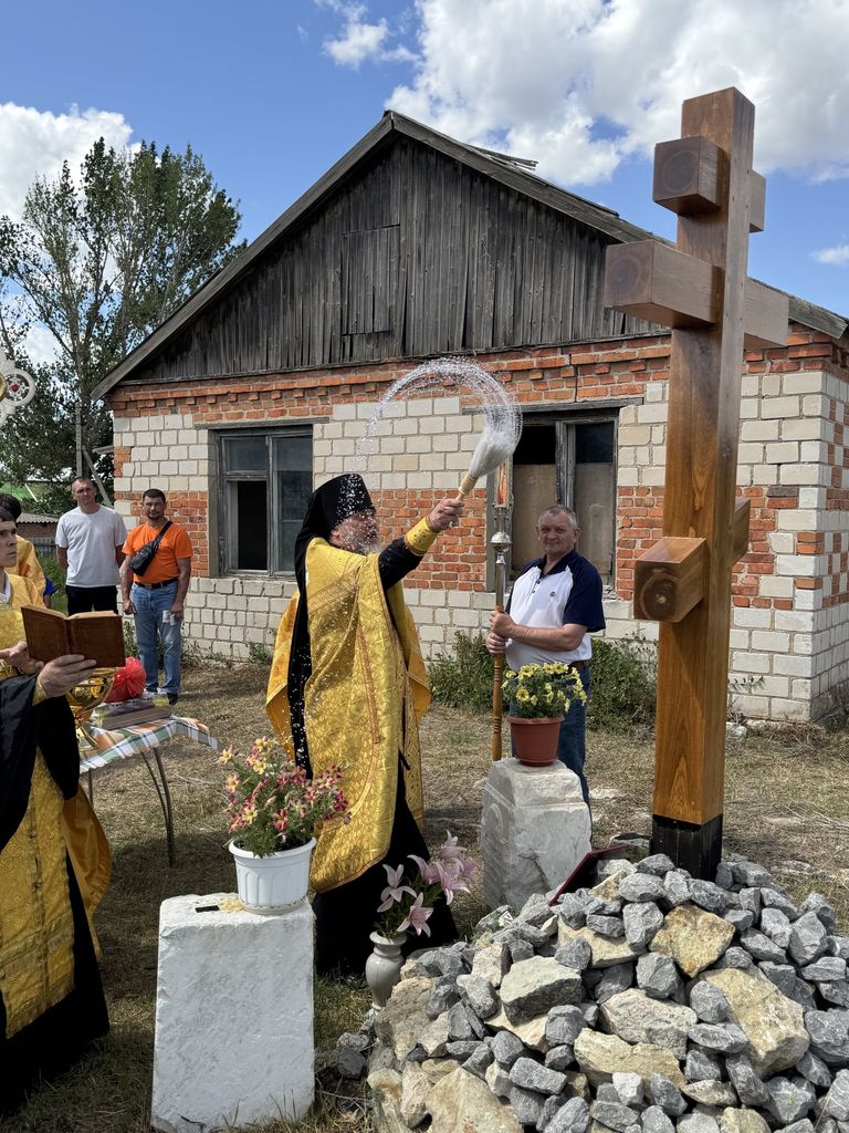 Воздвигнутый крест был окроплен освященной водой, после чего была отслужена лития по почившим священнослужителям храма. Благочинному сослужили настоятель Покровского храма сл. Никольской иерей Георгий Лукащук и настоятель Успенского храма ст. Мальчевской иерей Владимир Малородов. В своем обращении к присутствующим отец Димитрий поблагодарил Алексея Горбаткова и всех неравнодушных жителей за труды во Славу Божию. После службы местные жители угостили всех деревенской выпечкой и компотом.
