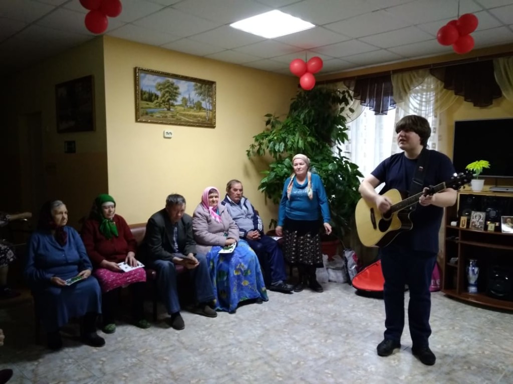 Центр социального обслуживания граждан пожилого возраста и инвалидов Шолоховского района хутора Колдунаевский посетили семь детей и воспитатель Шолоховского Центра помощи детям хутора Калининский на транспорте храма в честь Архангела Михаила. Также мероприятие посетили иерей Роман Митяшин и работник социальной службы Наталия Ценик, певец и композитор Тихон Шпынев, преподаватель музыки и волонтер Татьяна Лиховидова с электро-баяном.