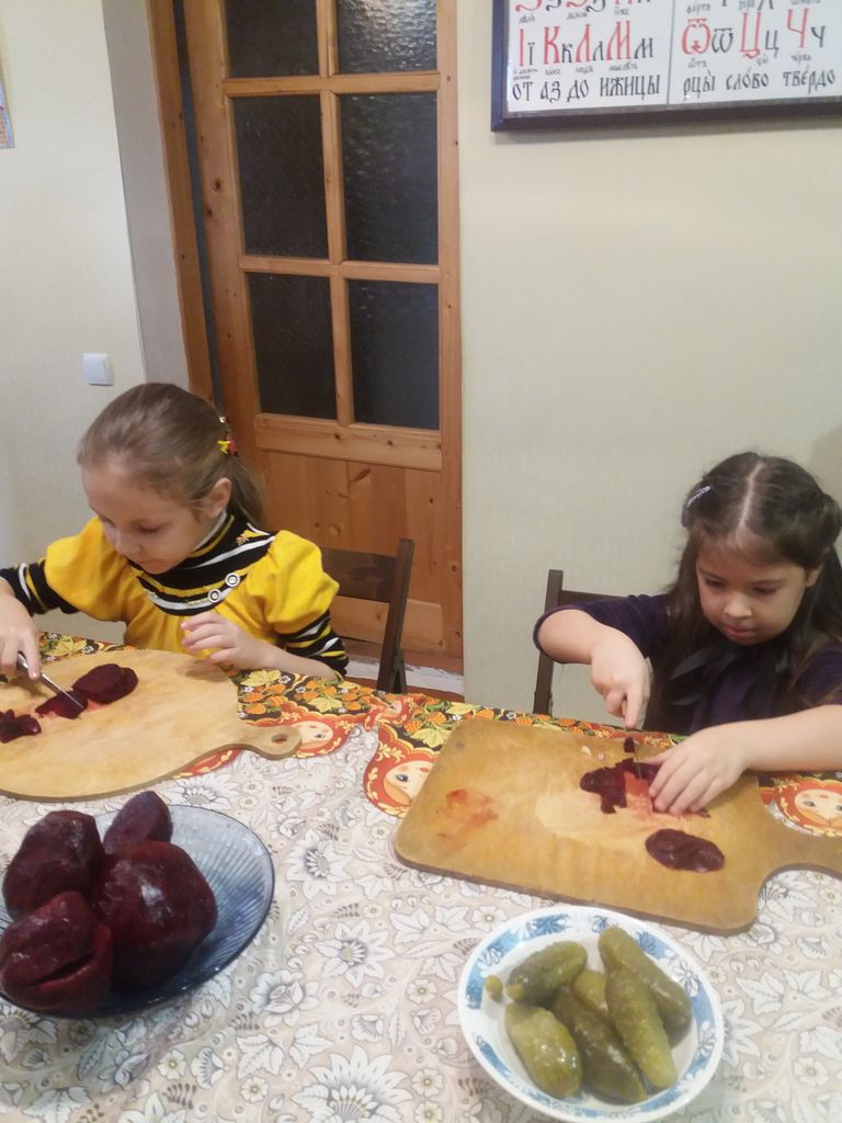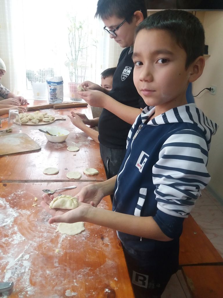 Младшая группа учащихся приготовили винегрет, а также научились лепить пирожки с картошкой. Особенно интересно занятие прошло для тех детей, кто в первый раз взял в руки нож и тесто.