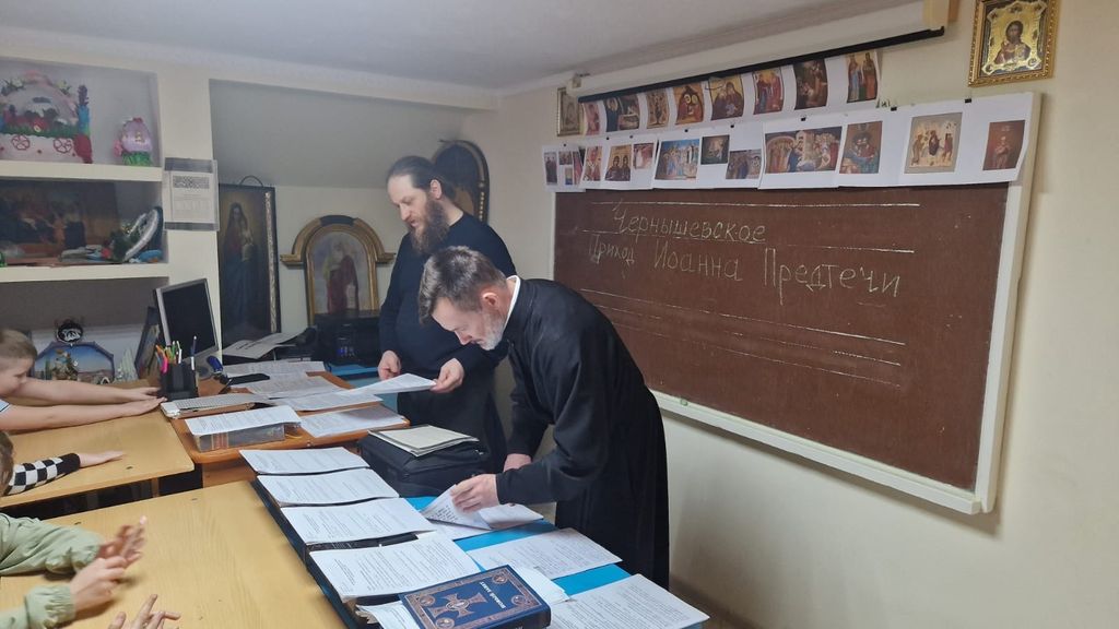 Перед началом написания работ была совершена общая молитва, после чего иерей Александр Левчик благословил учеников на успешное выполнение заданий.