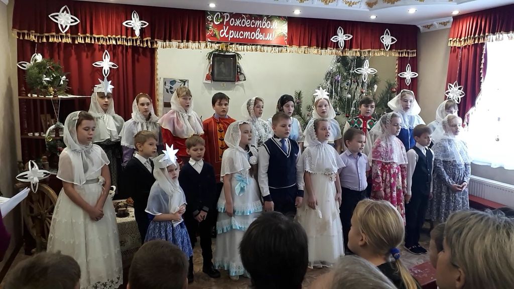 По благословению настоятеля храма иерея Александра Левчика и трудами преподавателей в актовом зале храмового здания ученики воскресной школы поздравили своих родителей и прихожан с Рождеством Христовым.