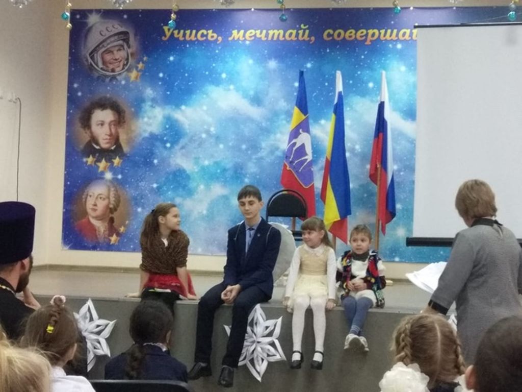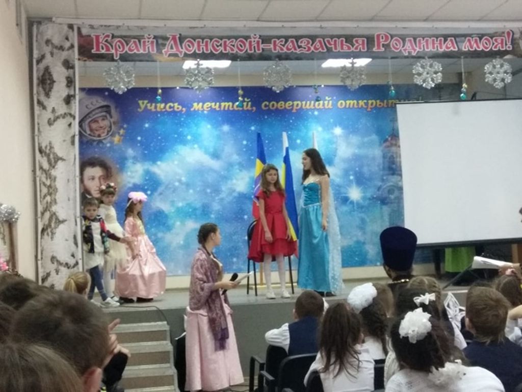 Воспитанники воскресной школы «Святоч» при храме святого благоверного князя Александра Невского г. Шахты поздравили учащихся школы № 14 г. Шахты с наступающим праздником Рождества Христова