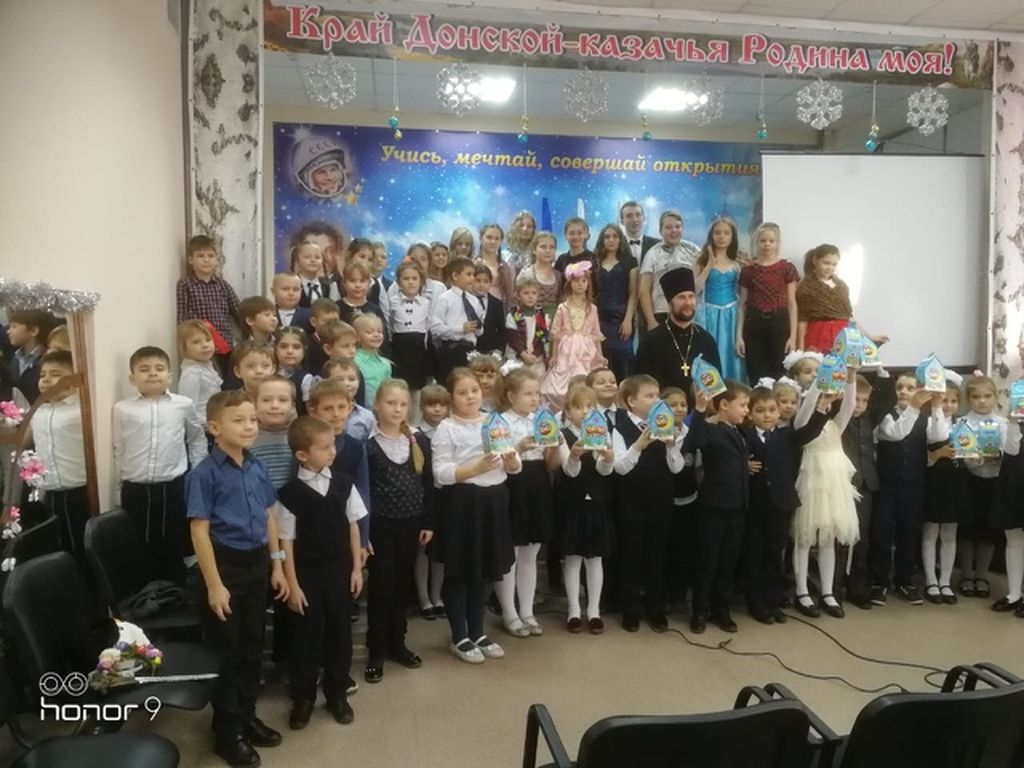Воспитанники воскресной школы «Святоч» при храме святого благоверного князя Александра Невского г. Шахты поздравили учащихся школы № 14 г. Шахты с наступающим праздником Рождества Христова.Дети пели колядки, рождественские песенки, рассказывали стихи, а также показали спектакли, рассказывающие про этот праздник.