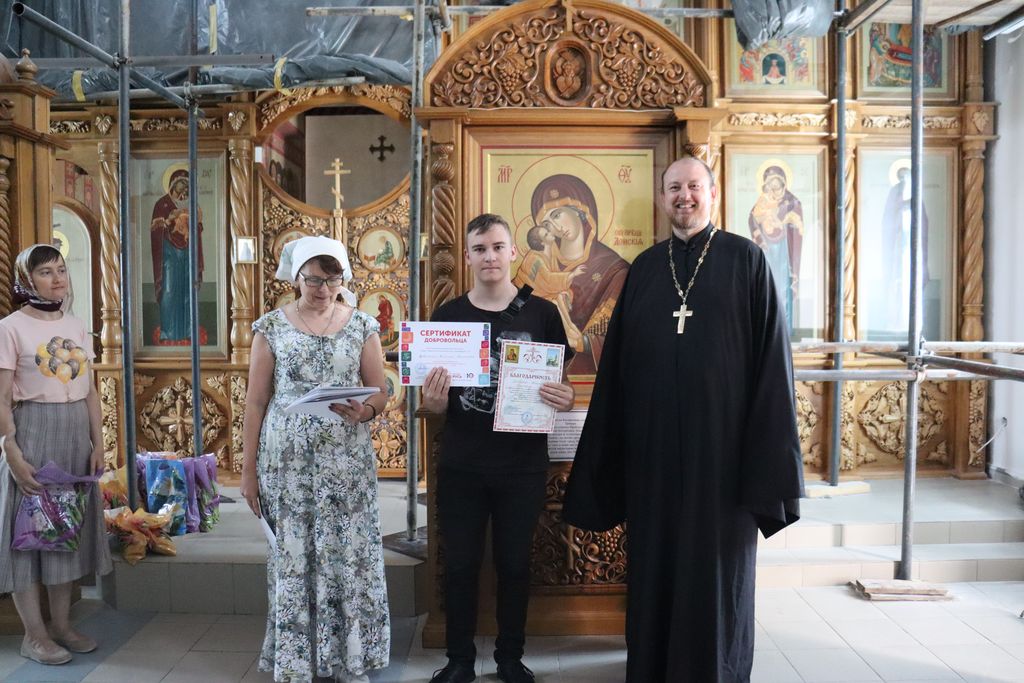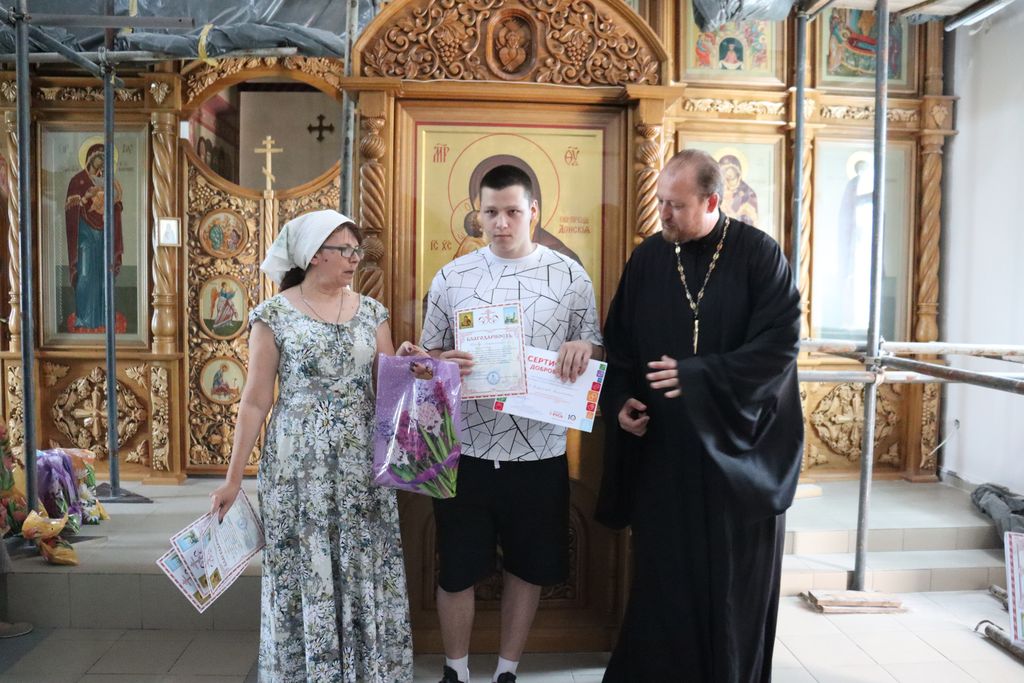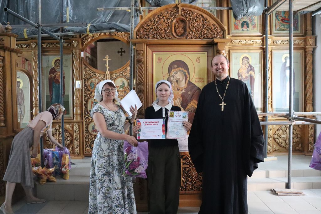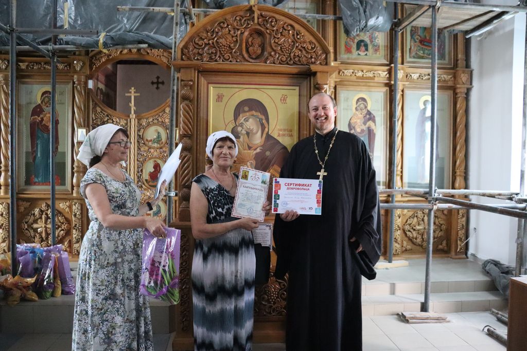 21 июня 2024 года, накануне празднования Дня Святой Троицы и Дня молодежи России, в храме Донской иконы Божией Матери города Новошахтинска, протоиерей Роман Амплеев, настоятель Донского храма, благочинный приходов Новошахтинского округа, руководитель епархиального отдела по взаимоотношениям Церкви с обществом побеседовал и наградил добровольцев и активных участников традиционного, продовольственного марафона «Корзина доброты» в г. Новошахтинске ,а также активных участников акций и мероприятий, проводимых Донским храмом и принимавших активное участие в работе гуманитарного центра «От сердца к сердцу» и реализации проекта «Круг спасения 2», поддержанного ФПГ.