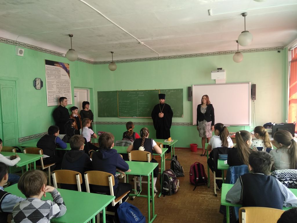 Священник встретился с учениками 4-го класса. Иерей Георгий рассказал детям о празднике Пасхи, о евангельских событиях Страстной седмицы. В завершение беседы ребятам были подарены образы Александра Невского и пасхальные куличи.
