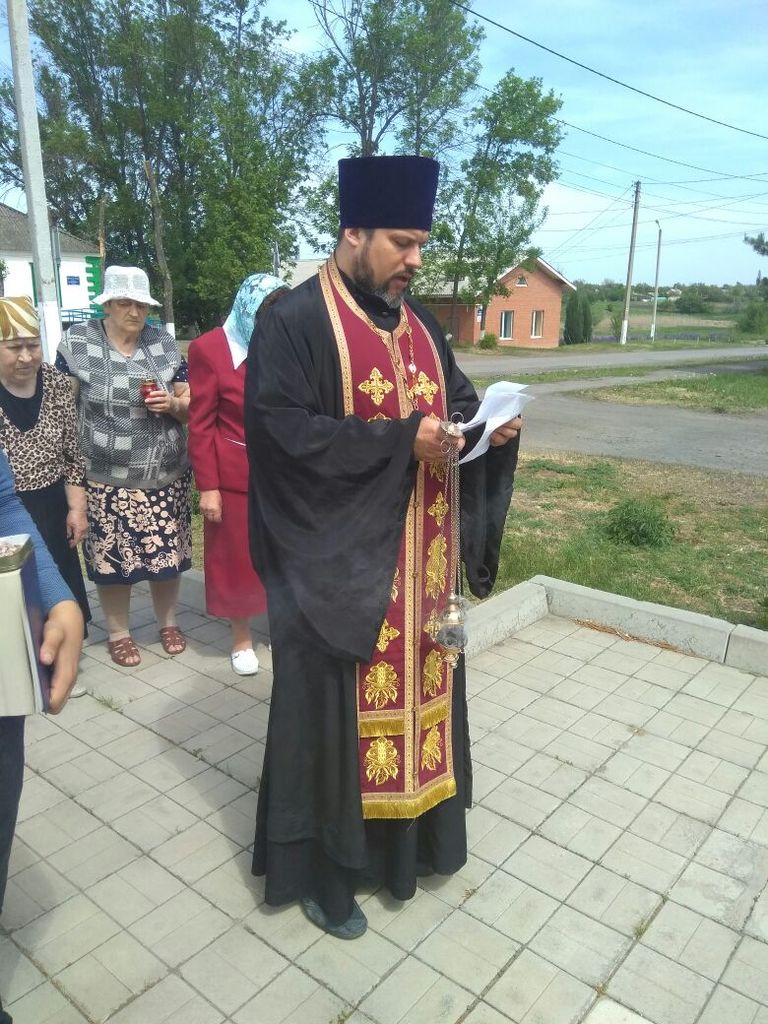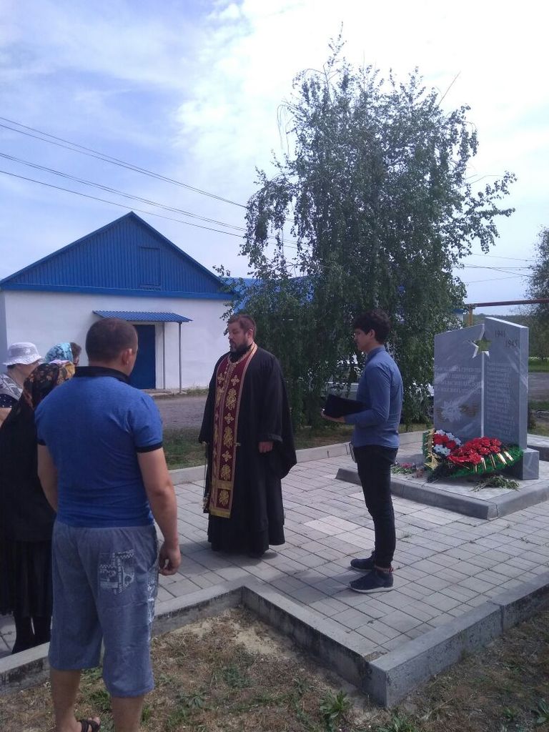 Настоятель Алексеевского Архиерейского подворья иерей Евгений Поцелуев в х. Красный Кут совершил панихиду на братской могиле воинов, павших в боях с немецкими захватчиками.